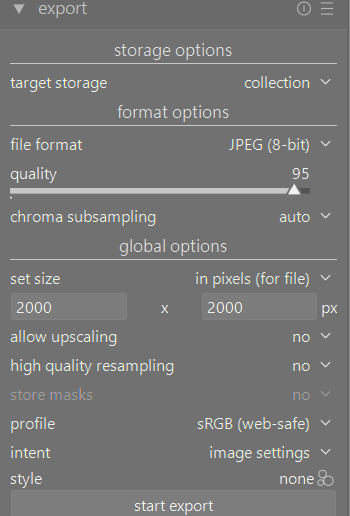 I always applied high quality resampling set to no in export to jpg. For the number of pixels I did not change the default 0,0. I used 2000,2000 as in your screenshot and the saturation problem has been really solved, but reduces the resolution as could be noticed when zooming and comparing this with export size 0,0
