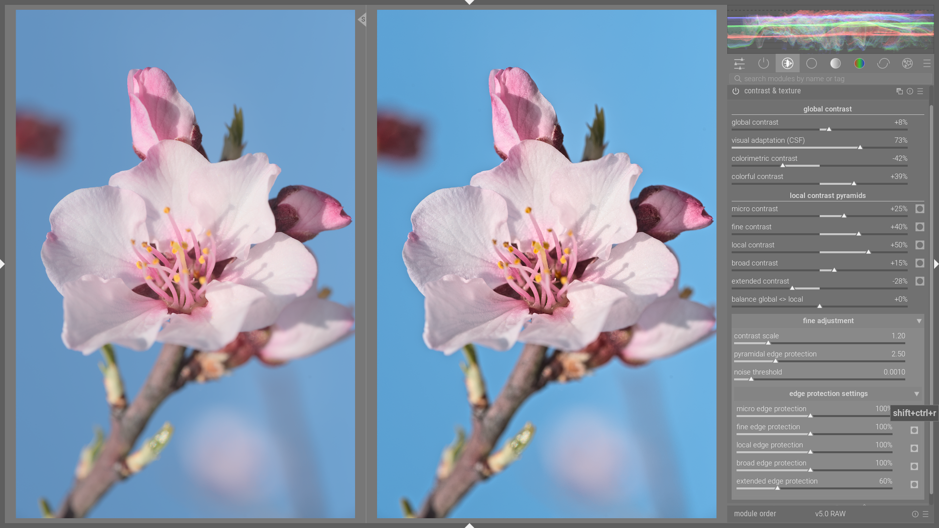 I renamed the module “contrast & texture.”