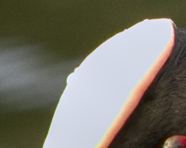 Could it be high ISO (noise) error? The highlight areas have lower resolution than the darker areas (feathers)