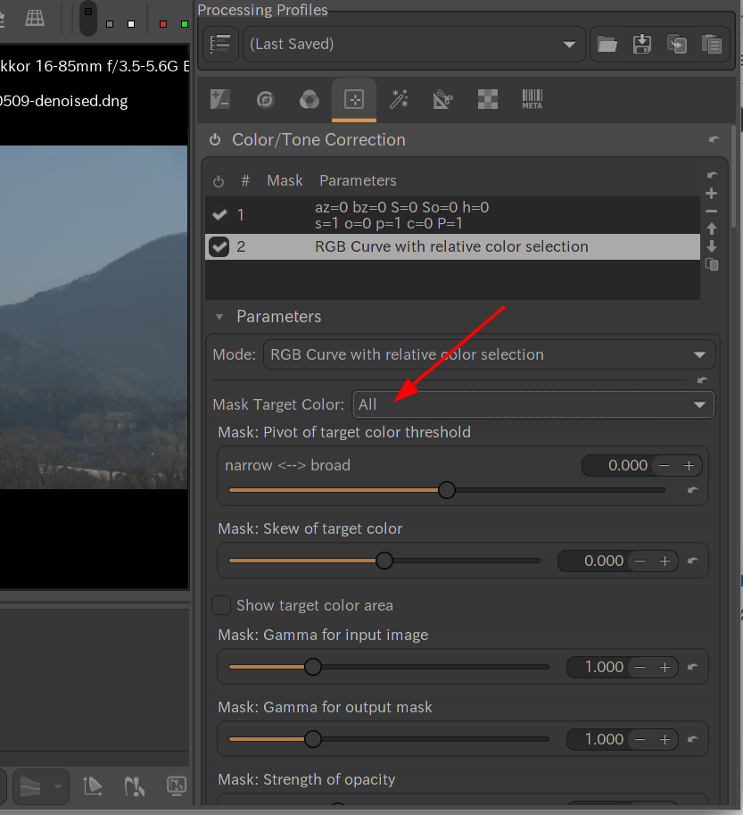 Basically, it is the RGB curve version of my Relative Color Area Collection CTL script, and it allows us to do more complex color editing. And in this script, I have added the “All Colors” option as a target color. When you select this option, it simply works as an RGB curve with local editing function, and of course some of the parameters of the correction area definition are invalid.