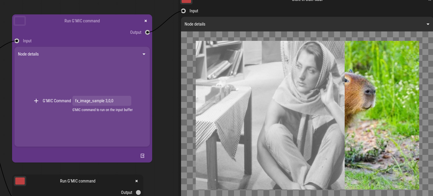 I 'm working on a custom GEGL plugin that uses G’MIC processing inside. I spent some time on analyzing code of gmic-qt and gimp host and made a first version working with basic filters like “negate”, “wind” or similar but not all the G’MIC operations are functional