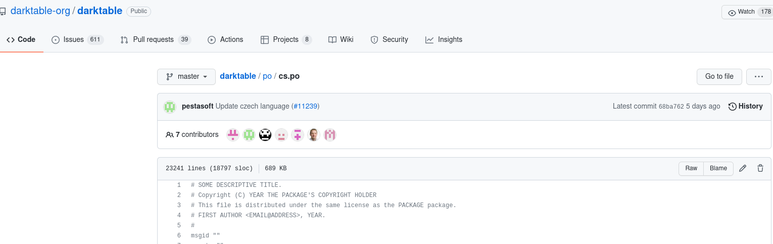 Thank you very much for the brief instructions and pushing. I don’t know where to download that file. So I just opened the cs.po file on github and copied it to a text file. Renamed and beyond according to your procedure and finally I have Czech in darktable. Thank you once again.