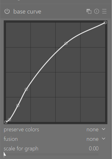 As for the tone curve, I actually like the adobe stuff and I copied the default Adobe camera raw tone curve in the tone curve module. Normally I don’t need to mess with it. A bit experimentation with filmic or sigmoid will give good results also (but probably not as a one click preset only solution).