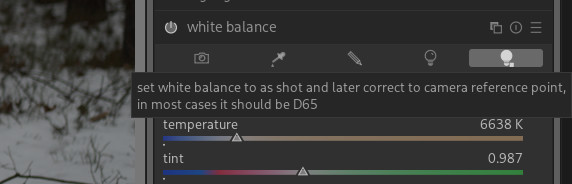 Therefore, it can be important to be able to set white balance manually, or via a color picker, and still activate the “later convert back to D65 reference temperature” option.