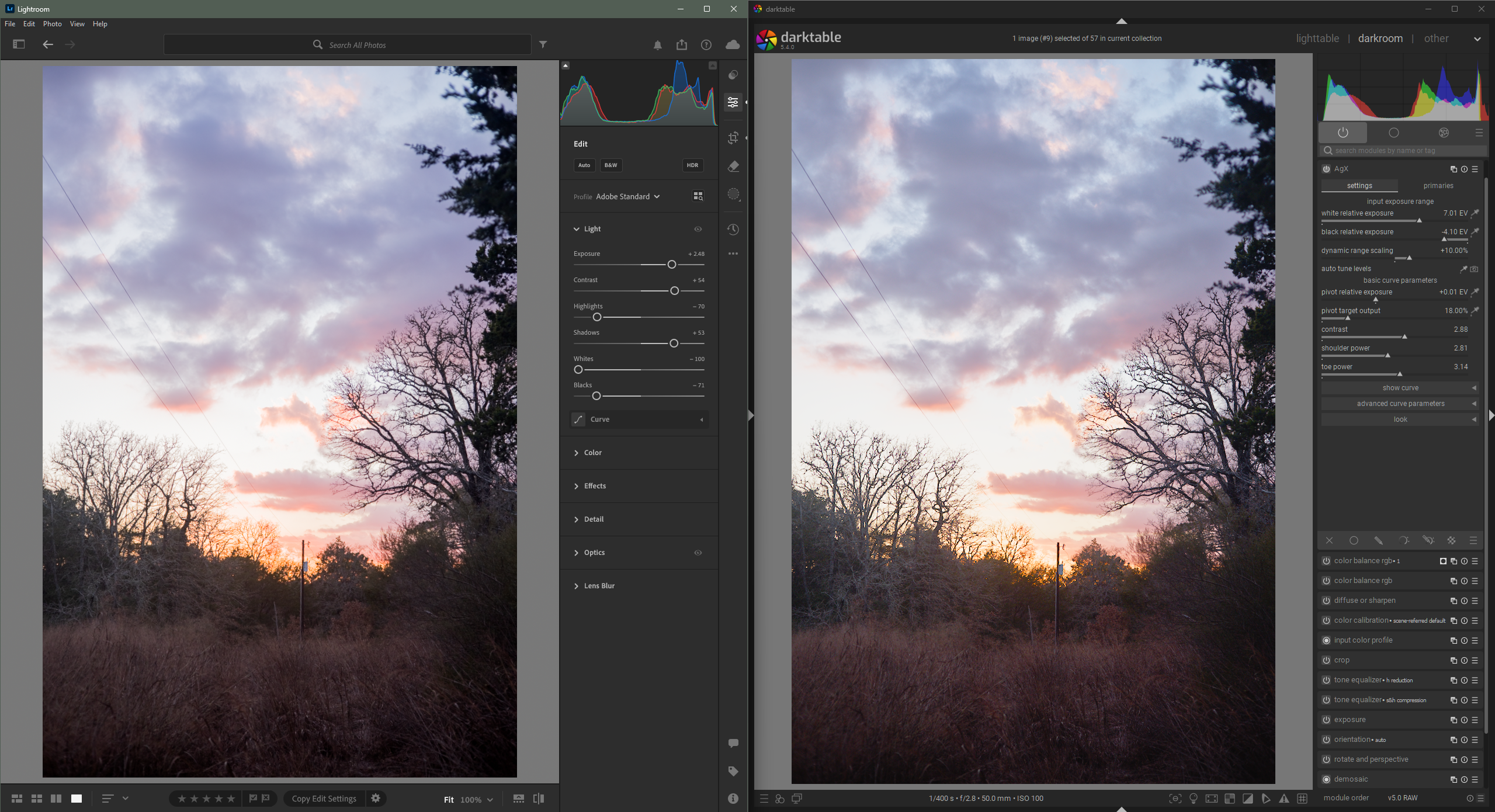 While I don’t think darktable is ugly, it still looks generally dated compared to Lightroom IMO. Not that looking dated is inherently bad. I will share a screenshot to hopefully explain what I am talking about. I only have access to LR CC, not Classic.
