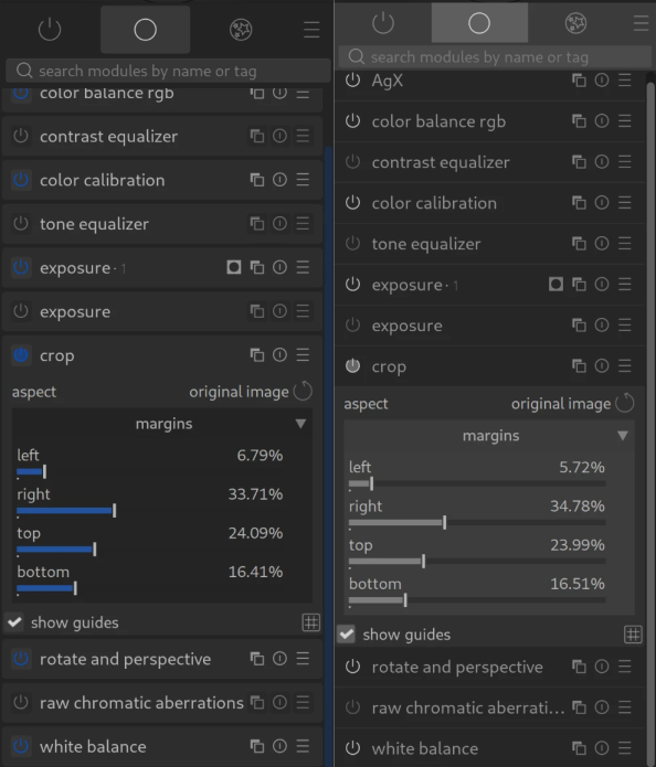 One additional area I would love to see per parameter granularity, is in creating styles. That is something I miss from lightroom. It would allow you to exclude specific parameters/controls when creating styles. So you could exclude auto-detect controls or controls that almost never stay the same, like the white/black relative exposure sliders in AGX, etc.