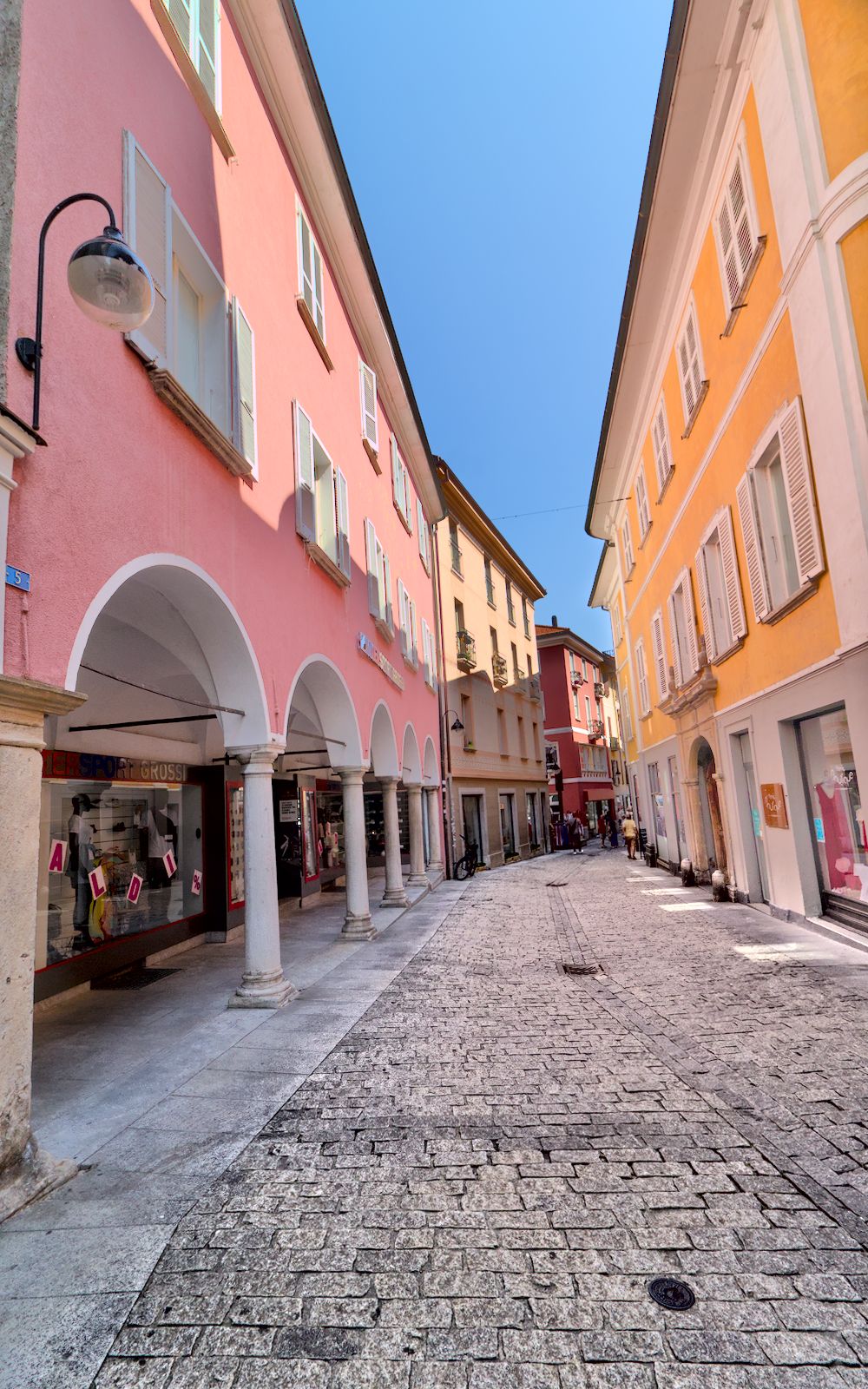 These beautiful buildings were quite colorful, yet the vibrance of the colors is lost in this capture due to the extreme difference in contrast between the parts in direct sunlight and the parts in the shade. Let's see how to bring this scene to life...