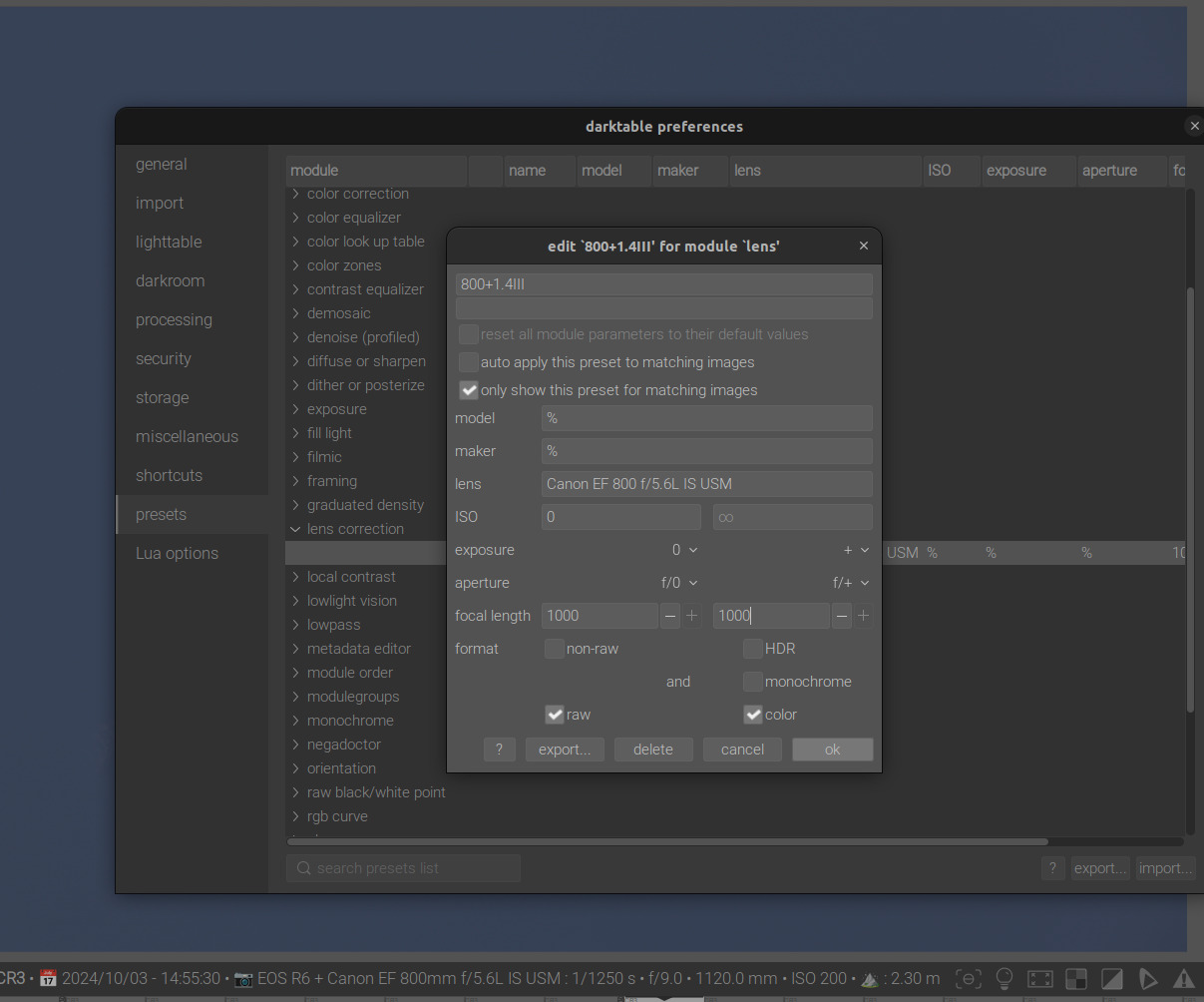 Is it possible to increase the focal length to 1120mm and 1600mm? Due to the change in exiv2 between darktable 4.6 and darktable 4.8 I lost the lens recognition ability with tele converters and EF800.