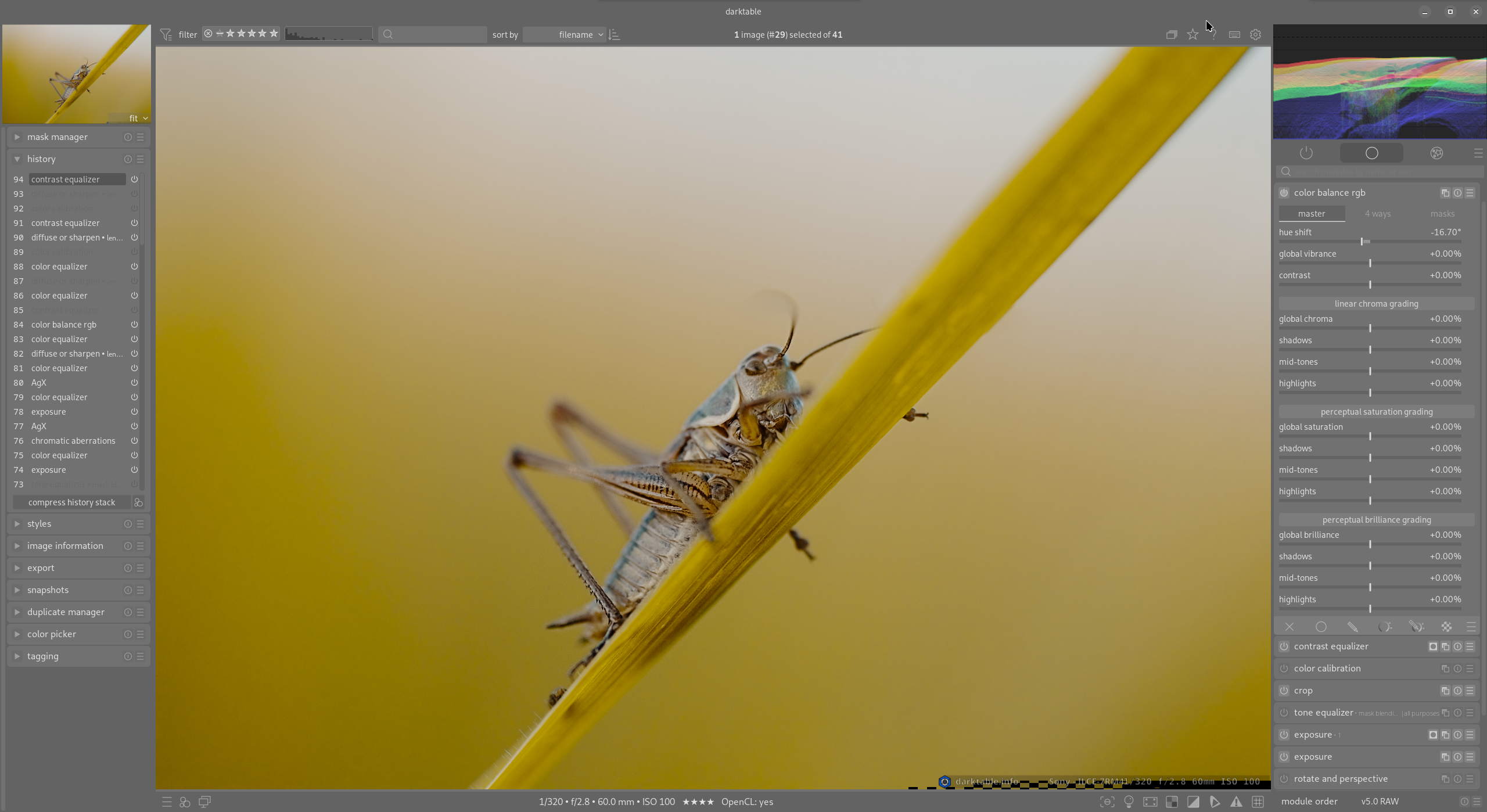 - Find ways to contribute to darktable, whether that be providing inspiration or stepping stones for others to utilize and build off of, or by making the contribution myself via coding.