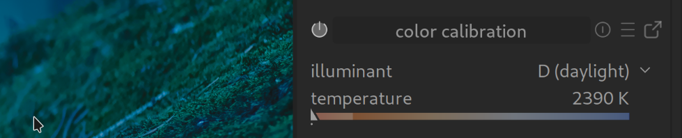 If I move the chroma slider to the left towards blue, the image becomes warmer; if I move it to the right towards orange/yellow, it becomes cooler.