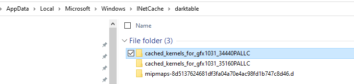These ones in local/Microsoft/Windows/INetCache/darktable ?