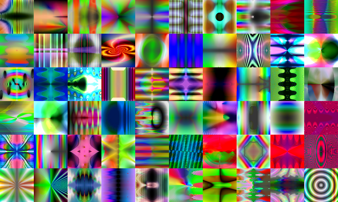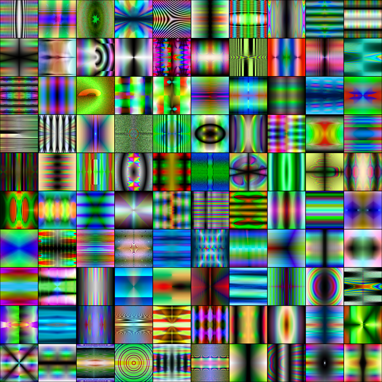 My second attempt. This time, I’m generating complex-valued math expressions, and use them to generate independent R,G,B channels, before merging the channels together.