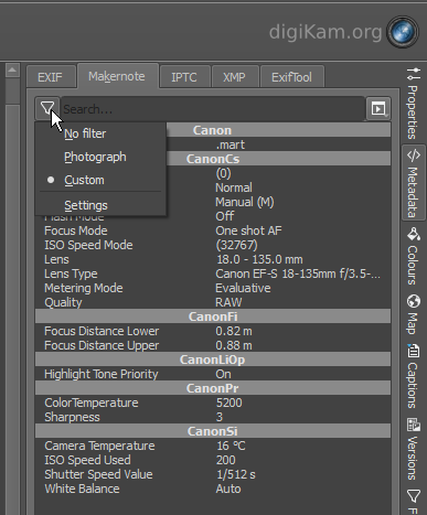 does anyone know how to make a selection for the displayed metadata in digiKam?