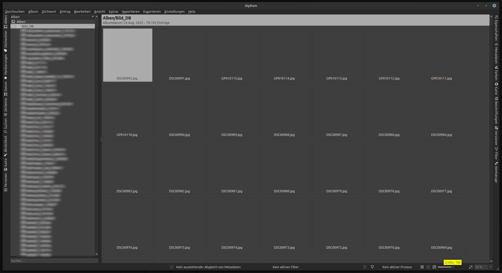 In both possibilities, the program starts and shows the known surface. Normal behavior would now be the set scanning for new images and viewing the previews. But this is not the case. It runs a process (ventilator noise), the previews remain empty and then Digikam crashed after a few seconds.