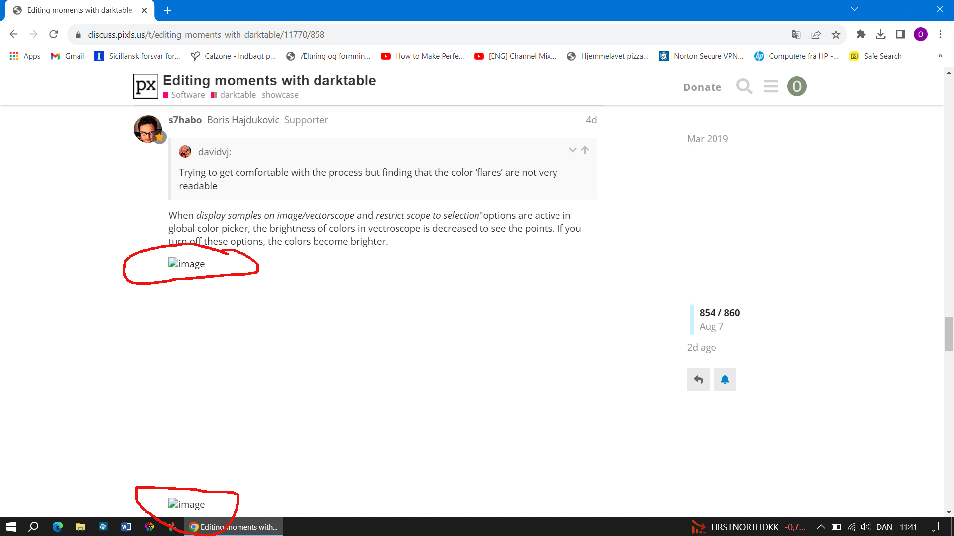 I just discovered that discuss.pixls.us doesn’t display graphics anymore on my 2 windows 10 computers when using the chrome and edge browsers. Only a small icon is being displayed and can’t be loaded by clicking on it. See screenshots below.