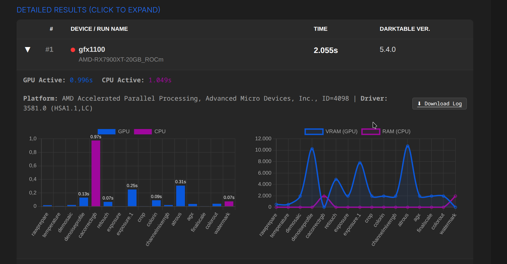 Update: Fixed chart labels, added log downloads.