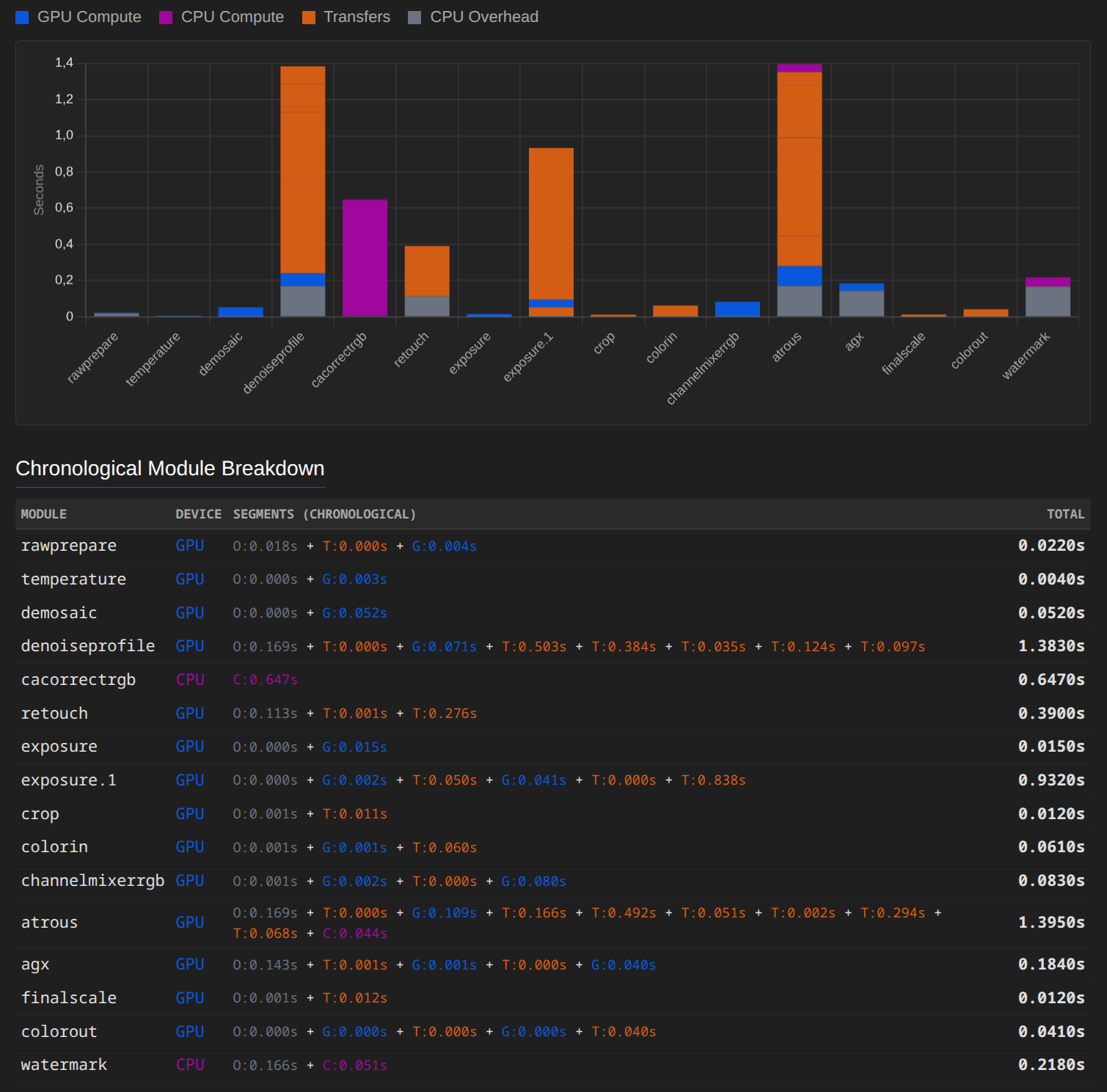 The exposure.1 is being blended on GPU here. I wonder if that’s because of VRAM or is it a newer version of Darktable with some openCL changes?