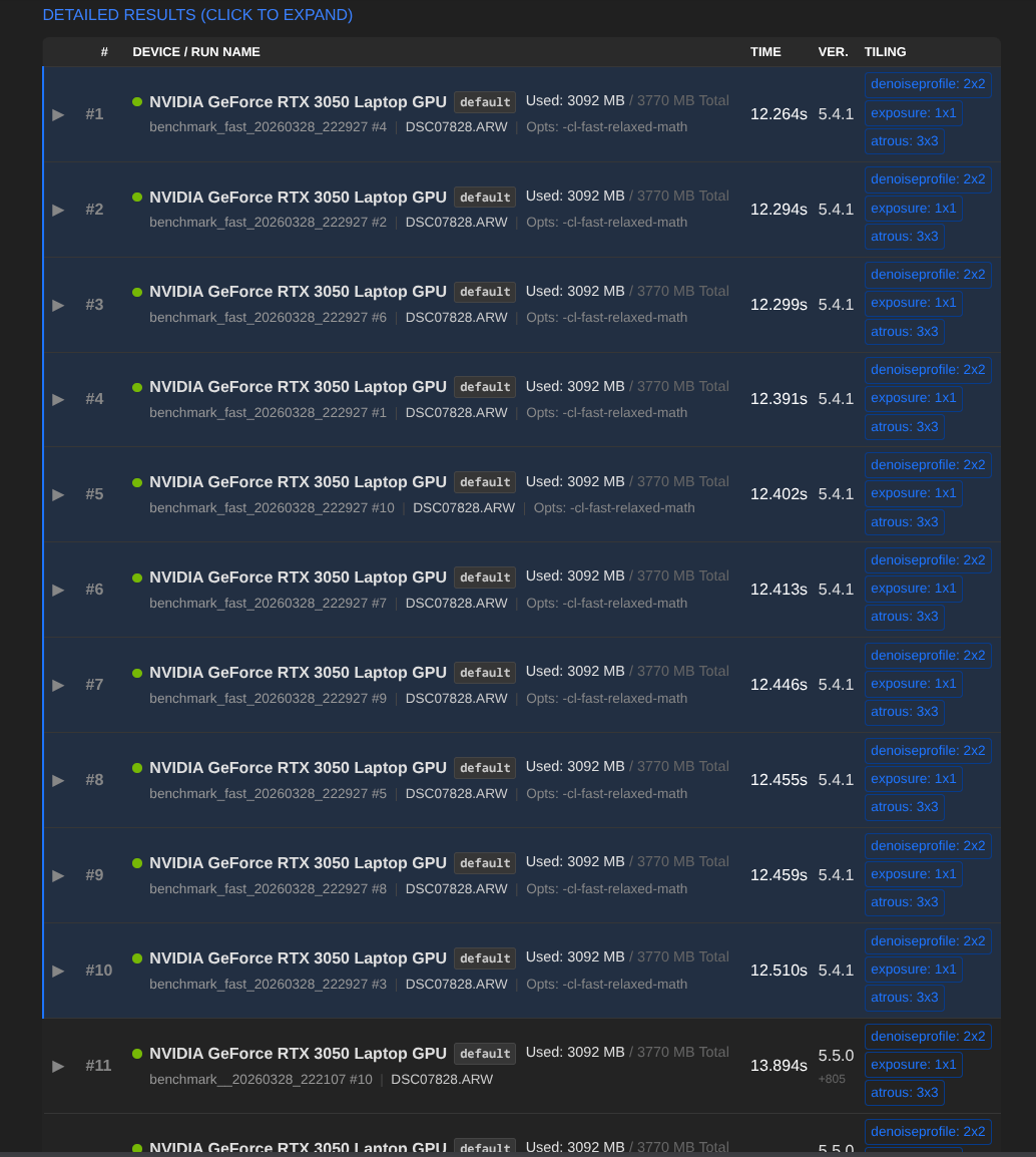 .\darktable-cli.exe DSC07828. ARW DSC07828. ARW.xmp test.jpg --core -d opencl -d tiling -d perf -d pipe > RTX2060_CUDA_61MP.txt 2>&1