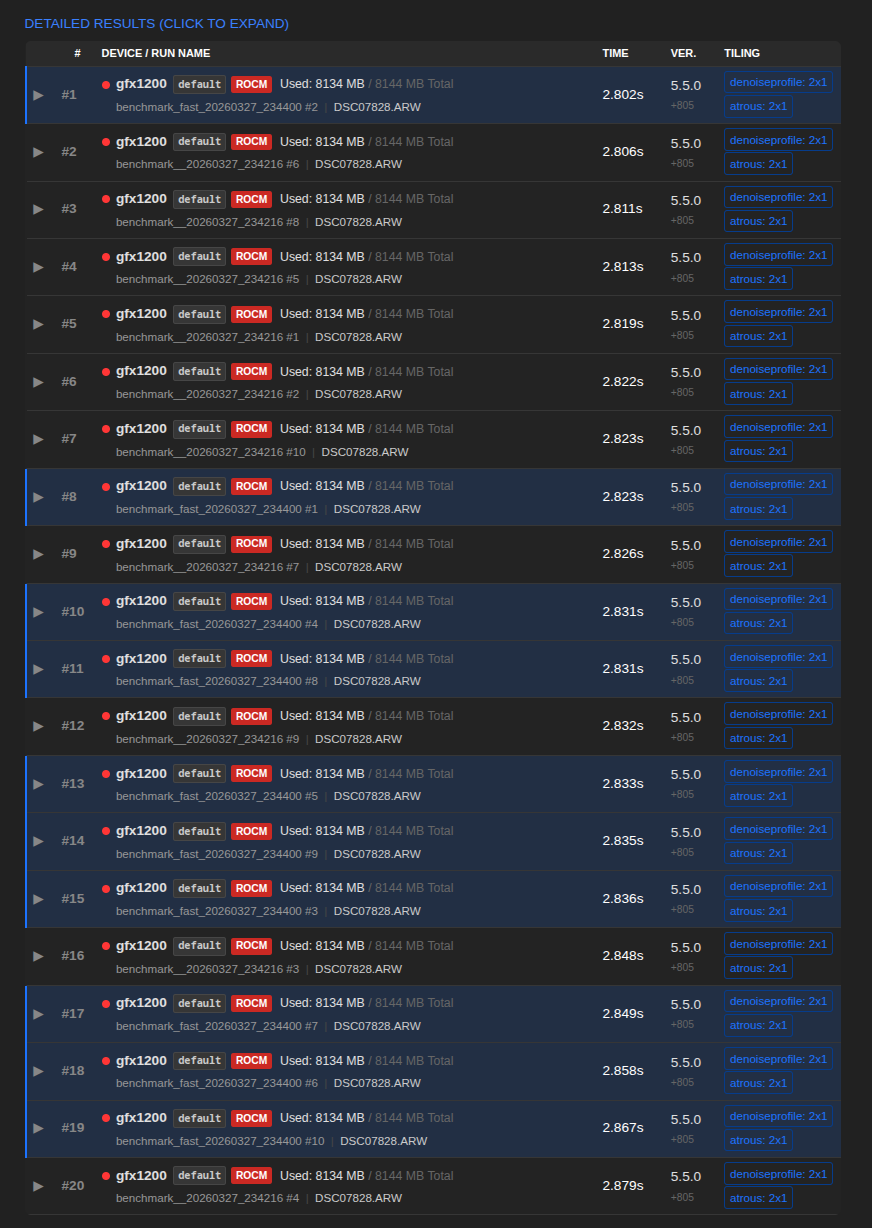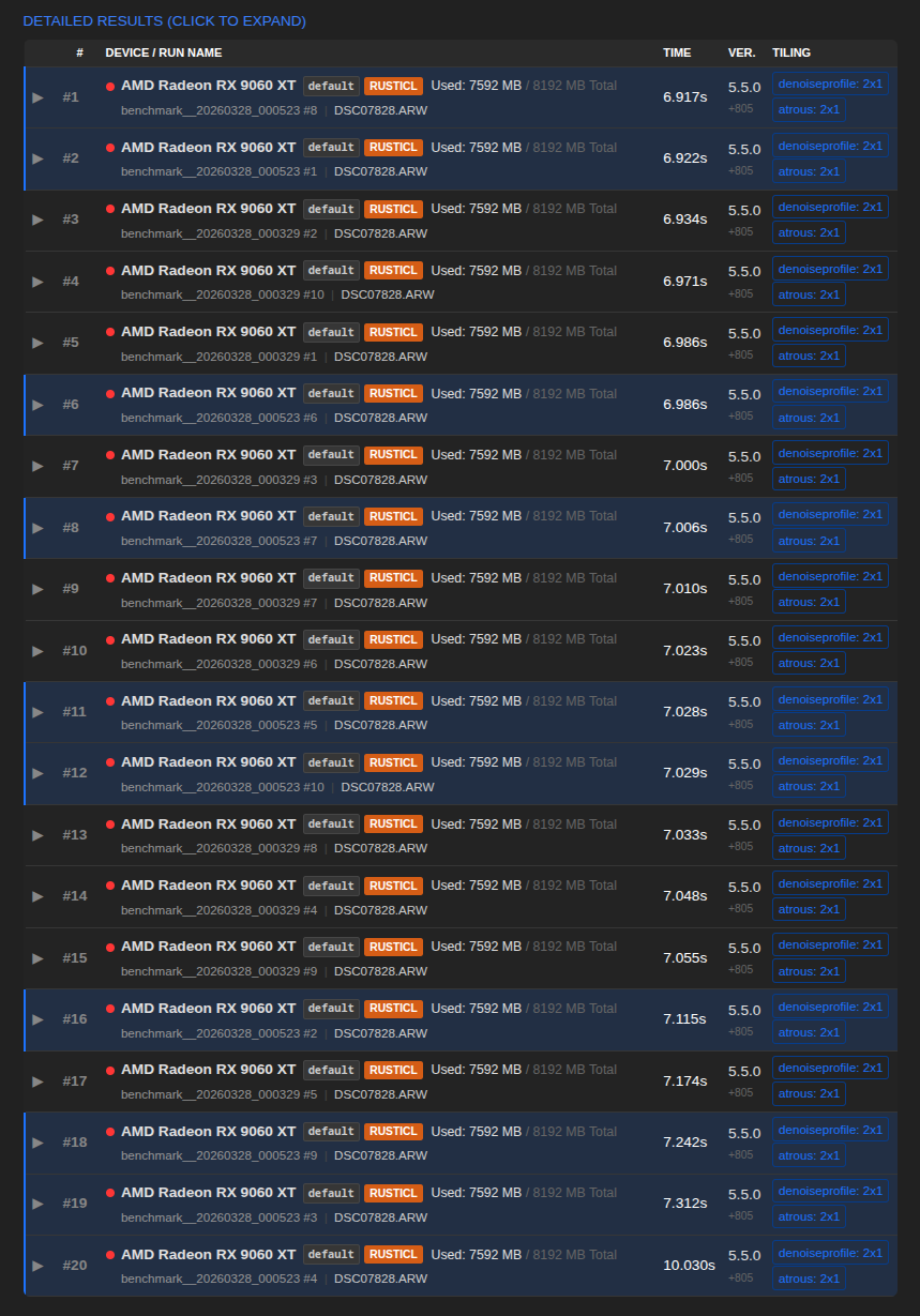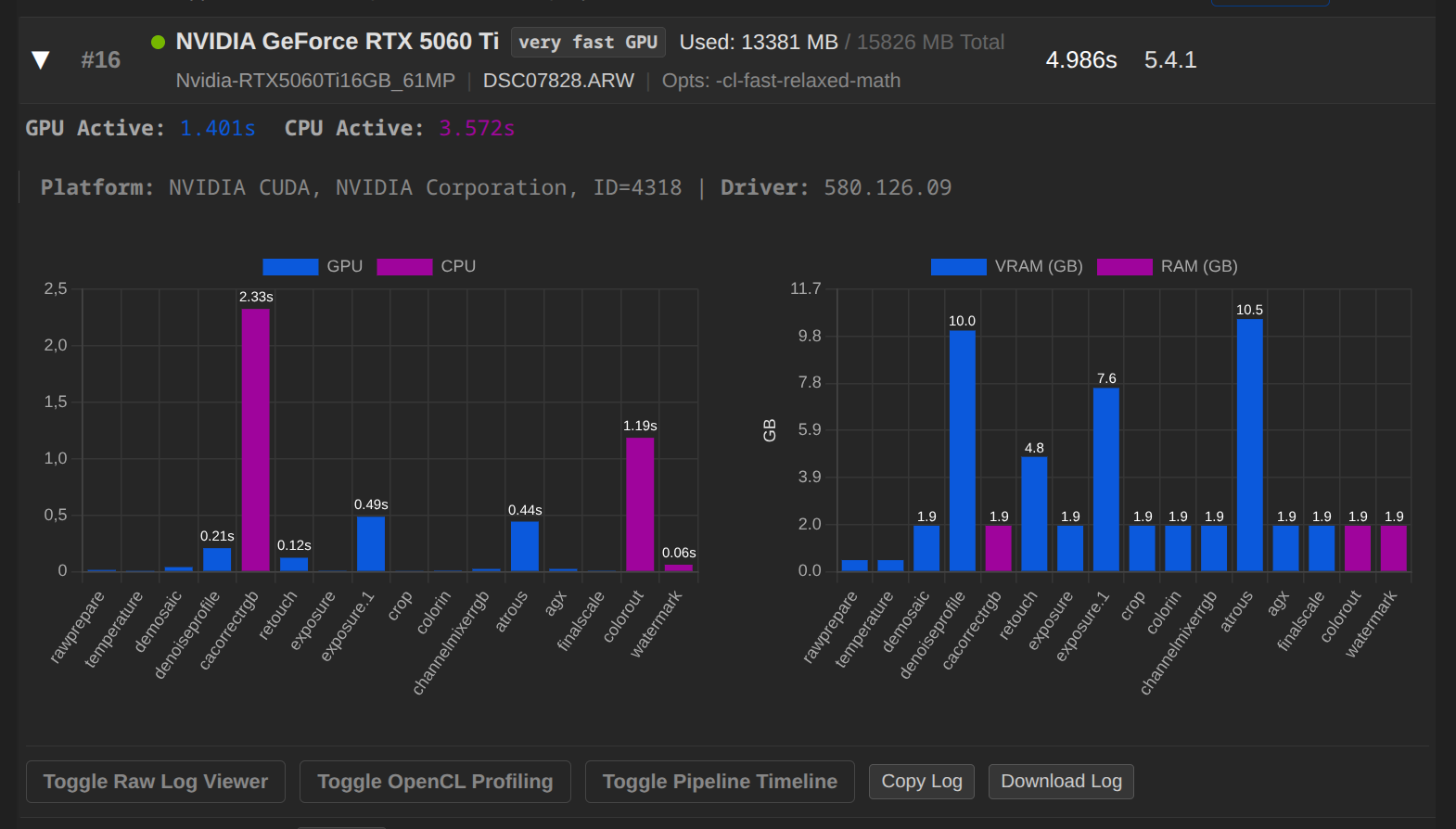 I am not sure. I haven’t done any tweaking to the darktable OpenCL settings for the Nvidia RTX 5060 Ti 16gb card.