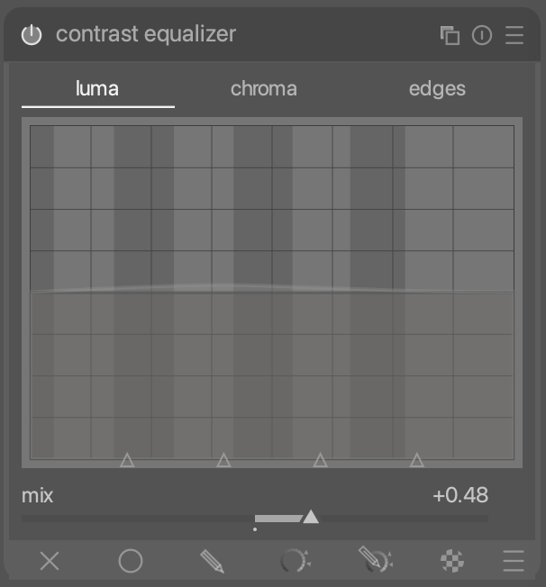 I usually preset my Contrast Equalizer with a clarity-like default preset that starts off with mix=0, so disabled. This allows me to dial in more or less clarity by just moving the mix slider.