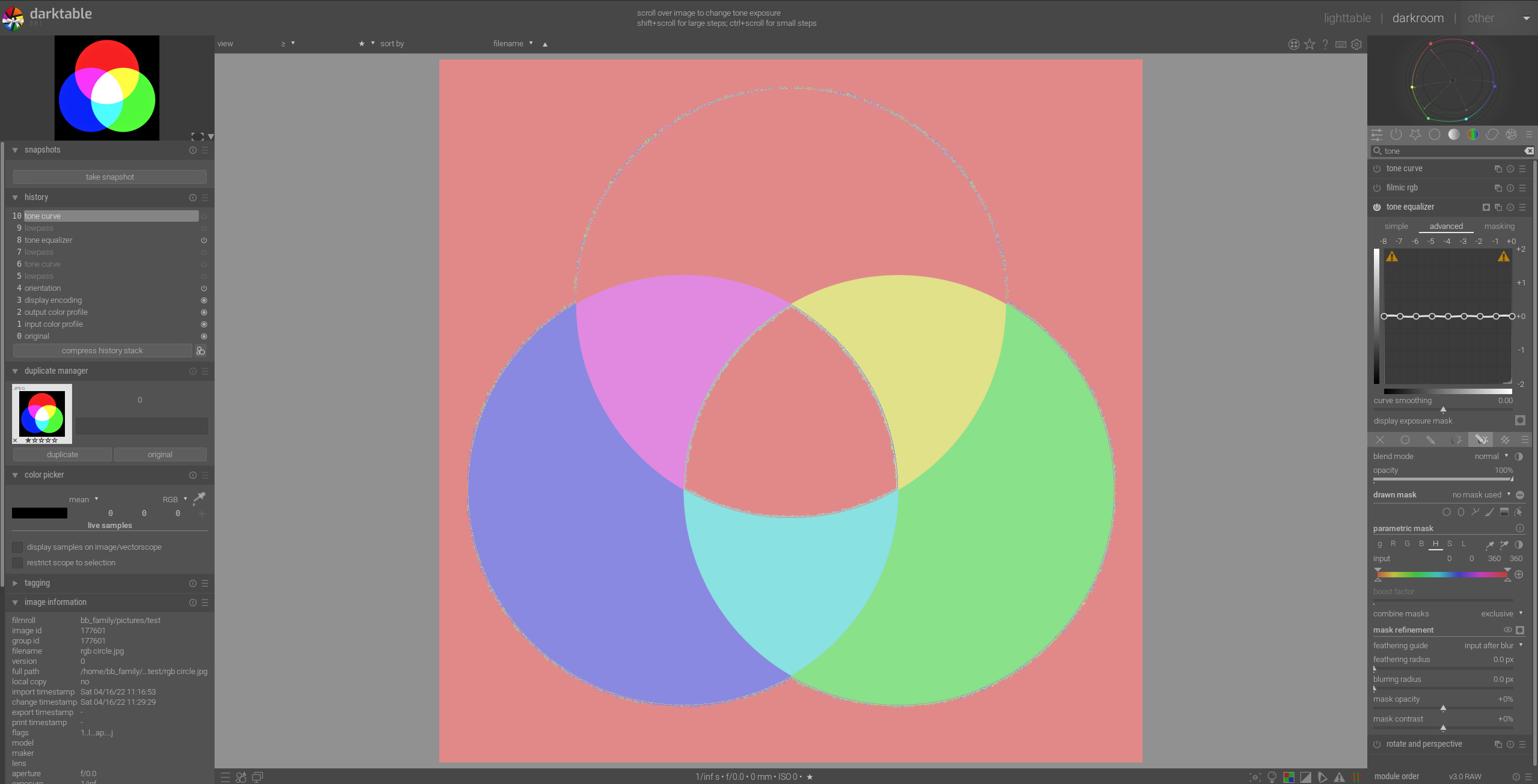 Interesting… Your way seems more useful than ours. Kustra’s technique is to create a middle grey layer and switch the blend mode to luminosity. That can also be done with the colorize module and switching the blend mode. She then samples those colors, brings them over to paletton and plays around with the various color harmonies to see which way she wants to push the hues of her pictures.