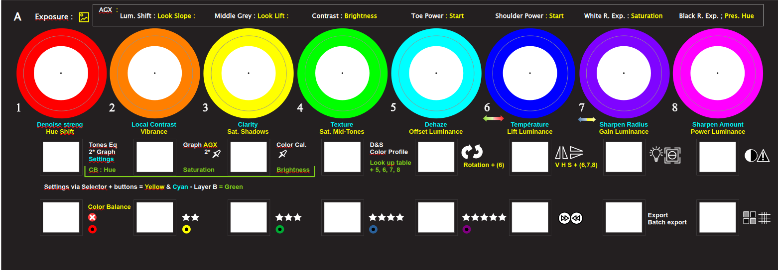 Here is an initial development of my thinking on organizing the MIDI controller mapping for AGX. Blender AgX in darktable (proof of concept) - #2257 by g-man