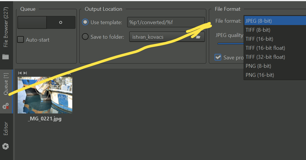 I don’t usually send images to print, but with my last job I felt the need to get files suitable for printing.I then noticed that the option to set the DPI of the resulting image in the queue section is missing.