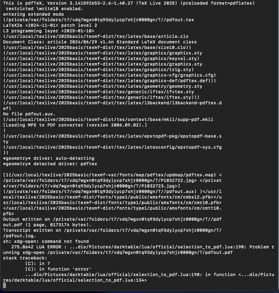 I get an error ‘problem running pdf latex’ when I try to generate contact sheet via the script. I have installed the package version of BasicTex, and check the scripts are up to date.