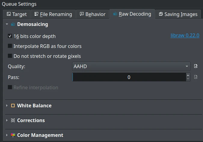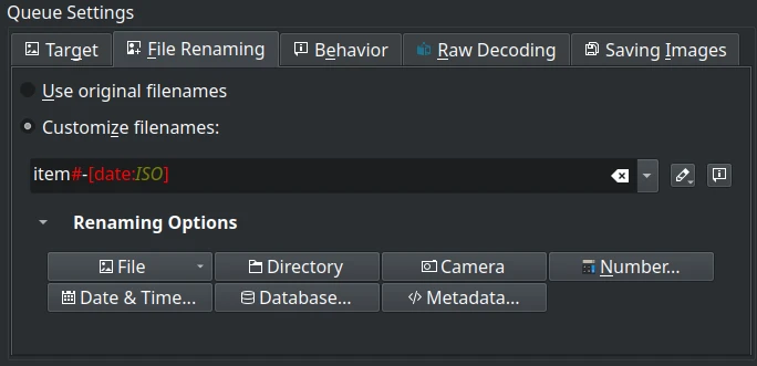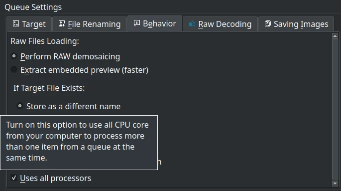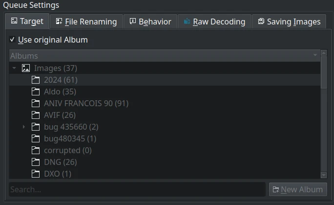 | Dedicated settings per queue (target album, RAW decoding, renaming, etc.) |