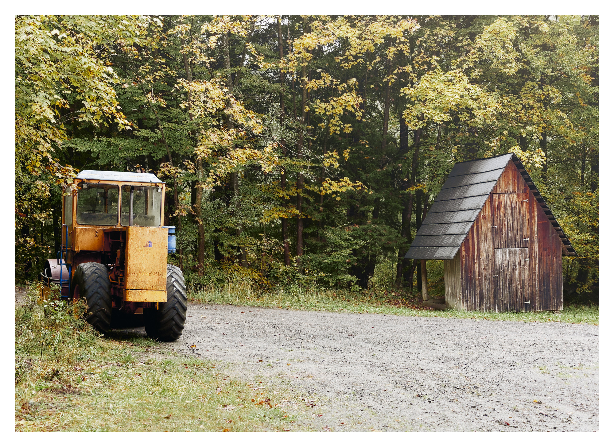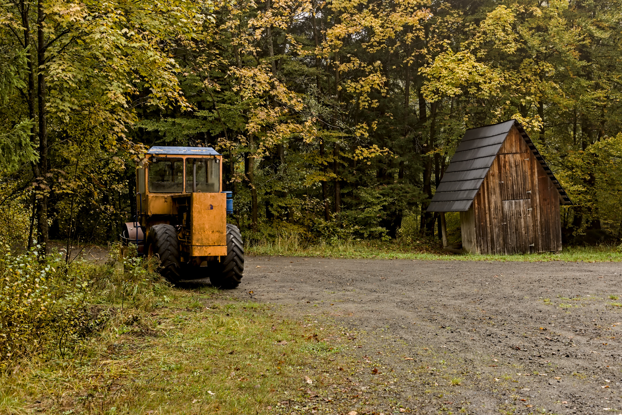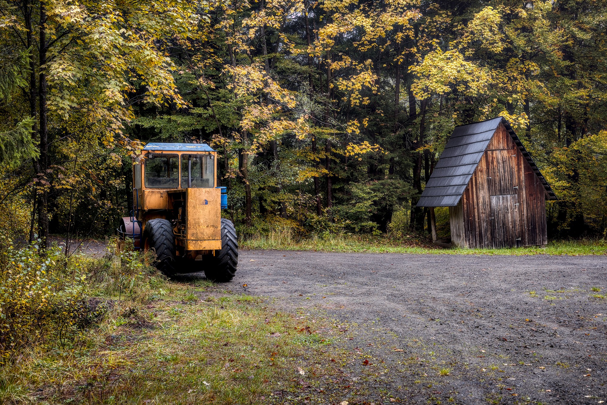 I am not qualified to comment on your processing, but I couldn’t resist the temptation to have a play in GIMP. I saw it as two images, the old hut and the road roller.