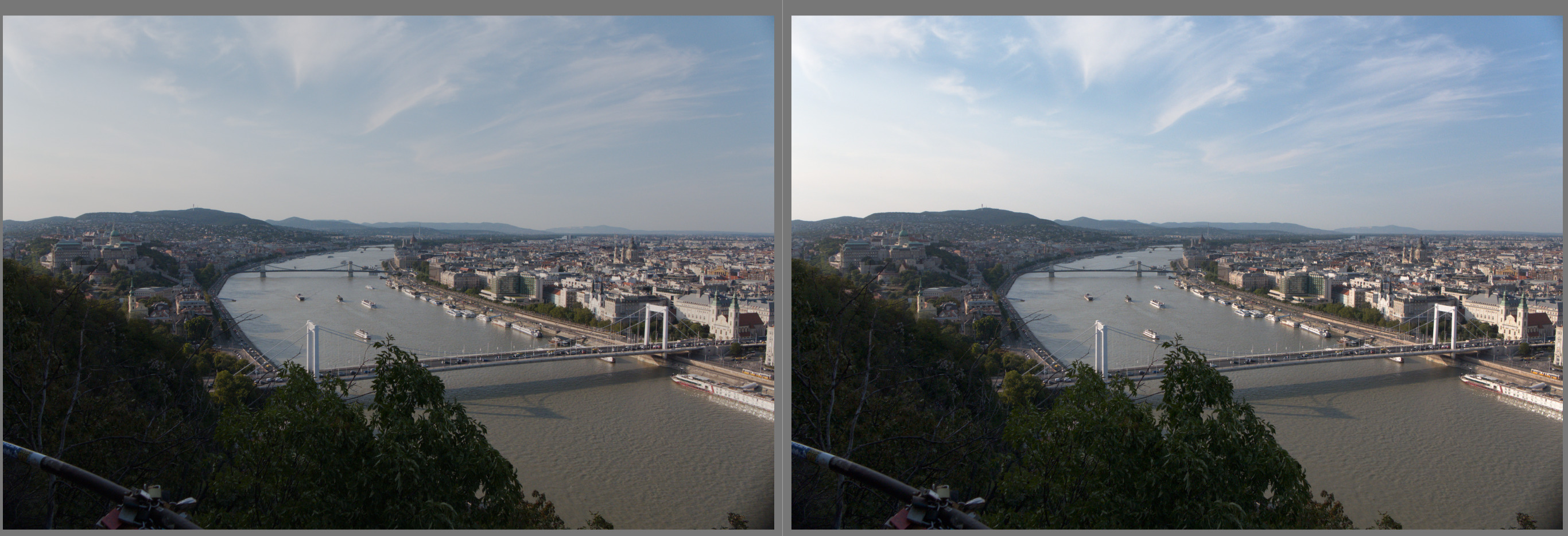 A more difficult, hazy sky (not a fair comparison, as I didn’t spend much time tuning filmic and sigmoid, but I did experiment quite a bit with AgX trying to match them – which is not the purpose of editing, normally):