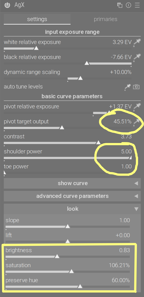 If you don’t use the RGB primaries with sigmoid, you can use the unmodified primaries preset with AgX, and just use look|preserve hue to control colours. If you like sigmoid’s smooth preset, the identical primaries manipulation is also available as an AgX preset.