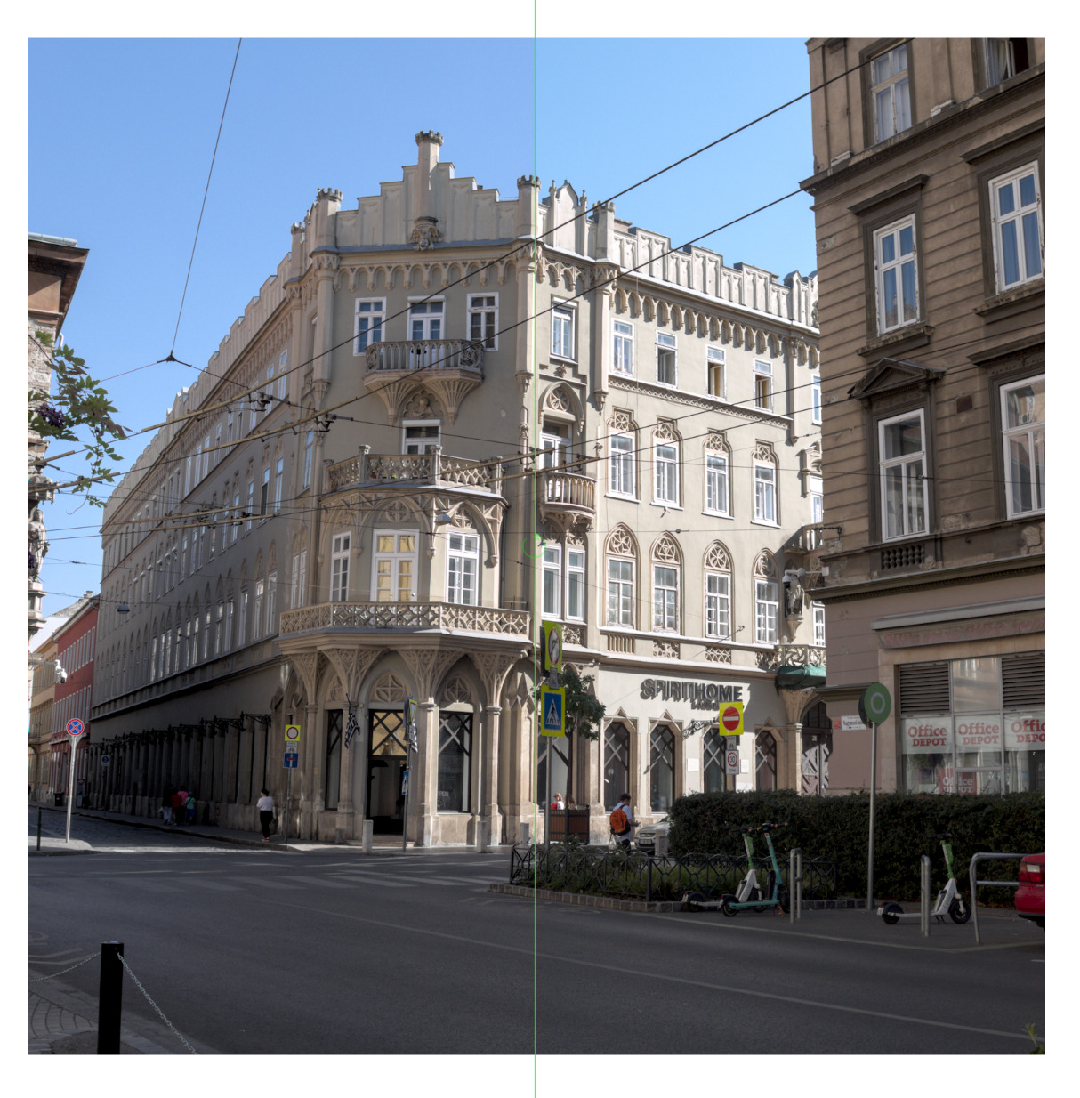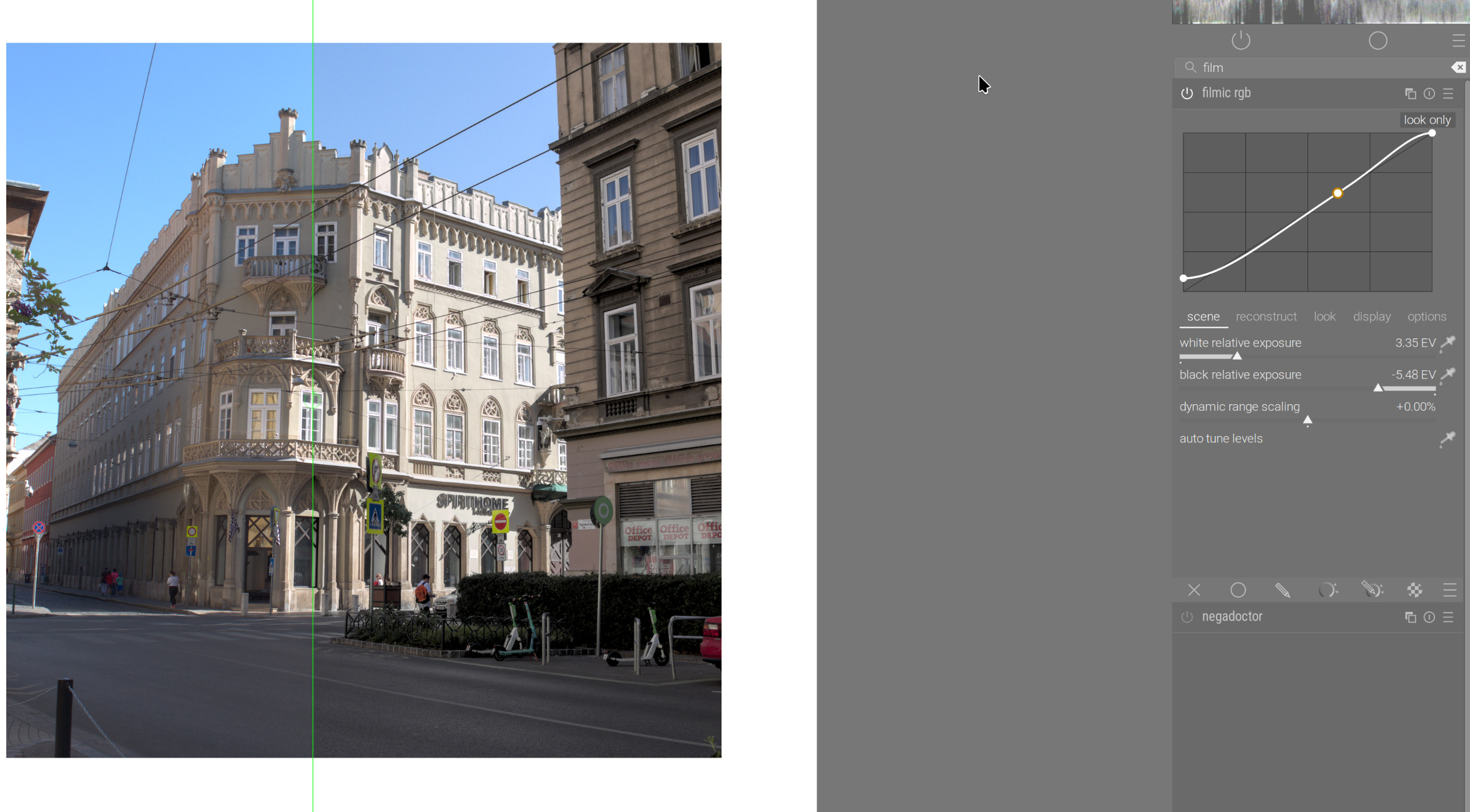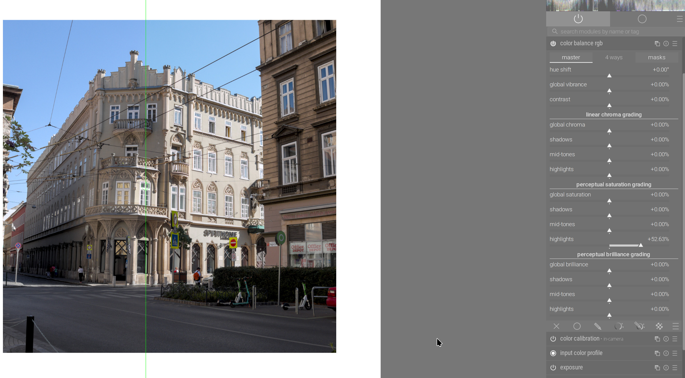 One could move the pivot higher (I sampled the sunlit face of the building), and increase contrast – and then color balance rgb is no longer needed (it’s turned off here):