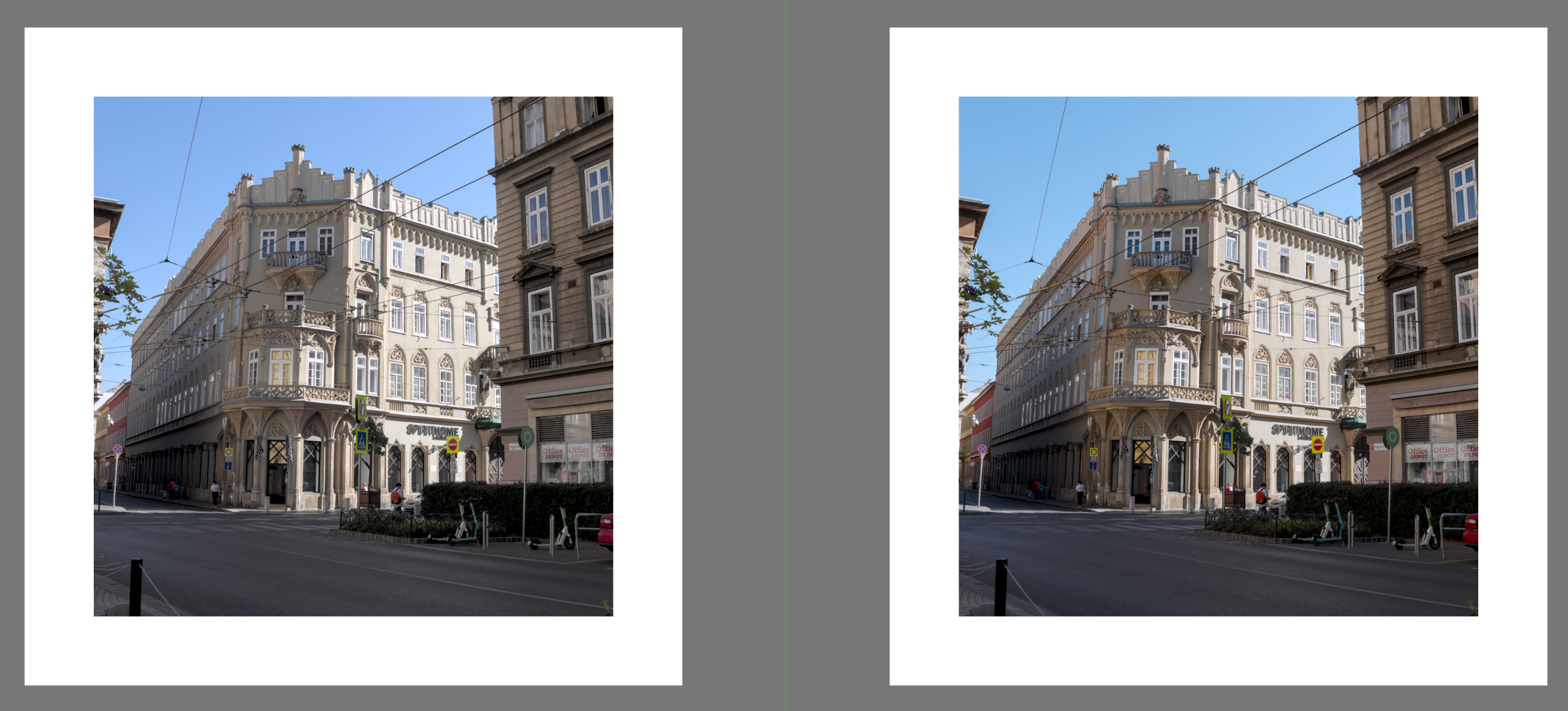 Left: image without tone mapper (gamut check shows the sky is actually out of gamut, but looks more or less OK here). Right: filmic, auto-tuned. No other changes.