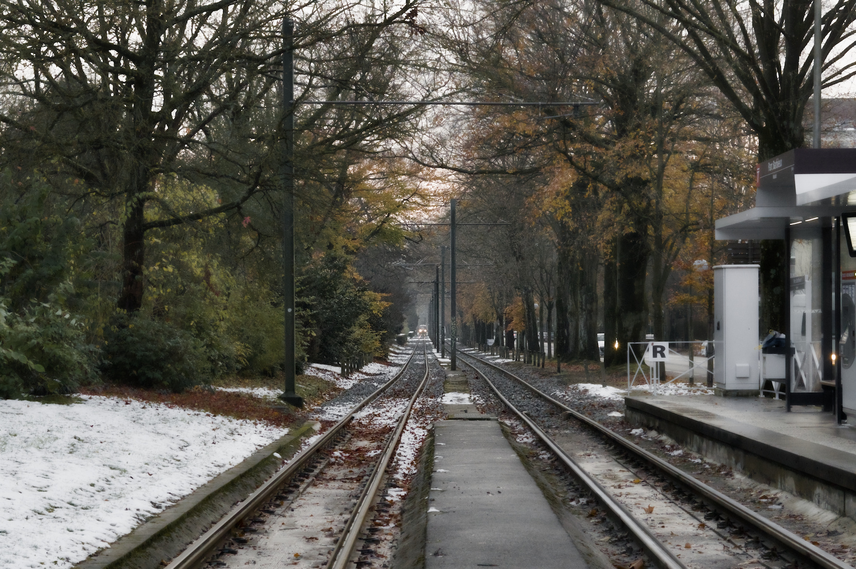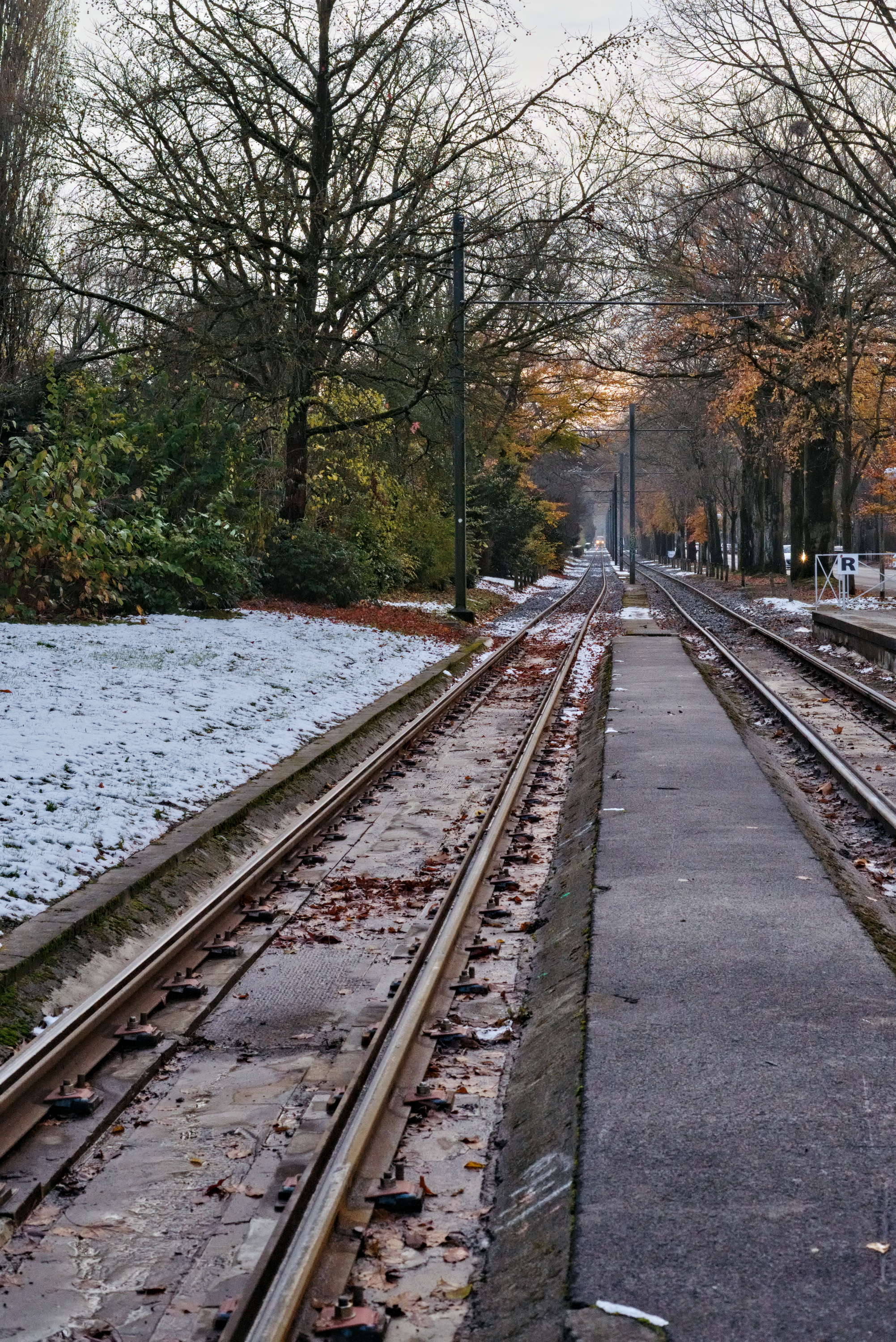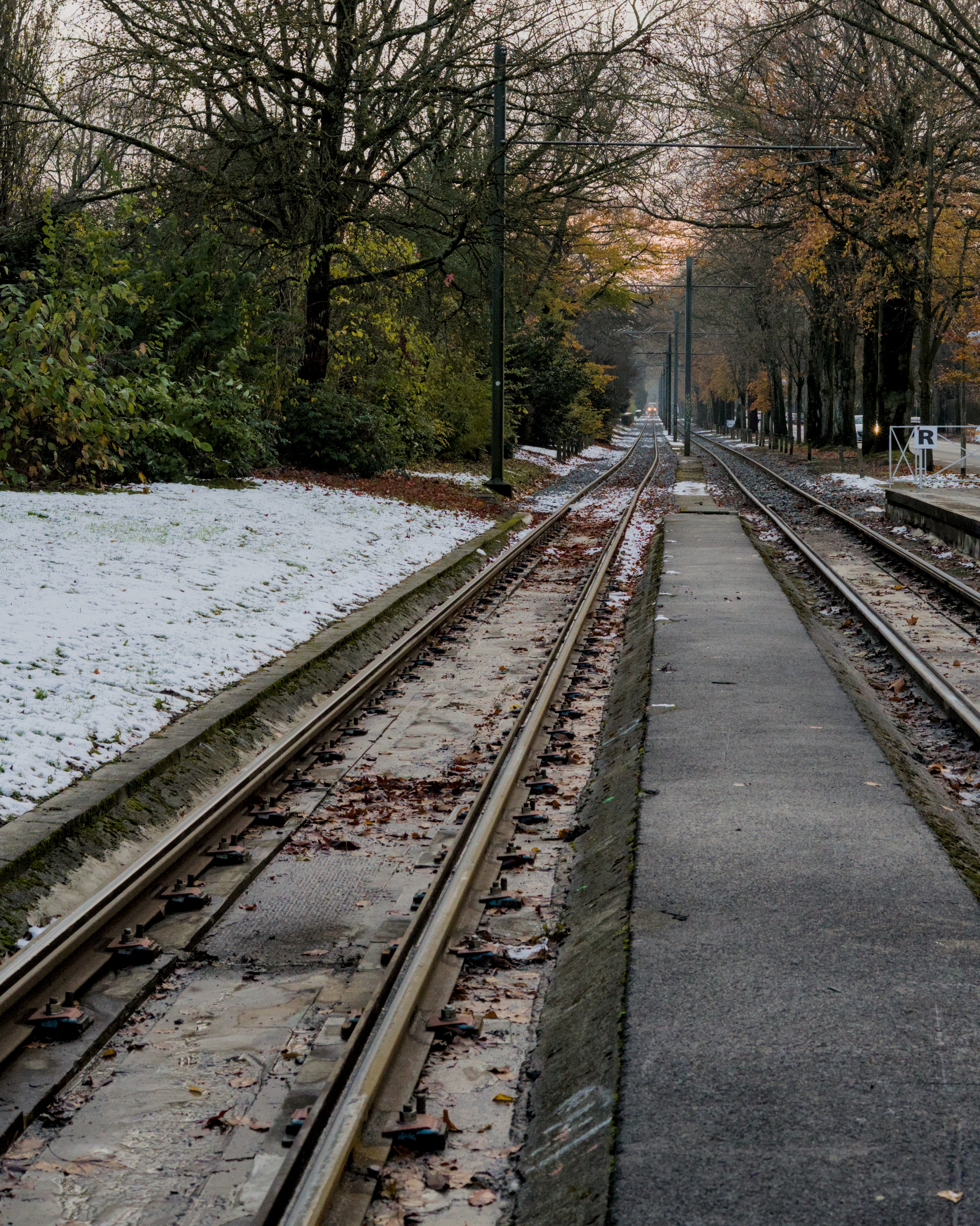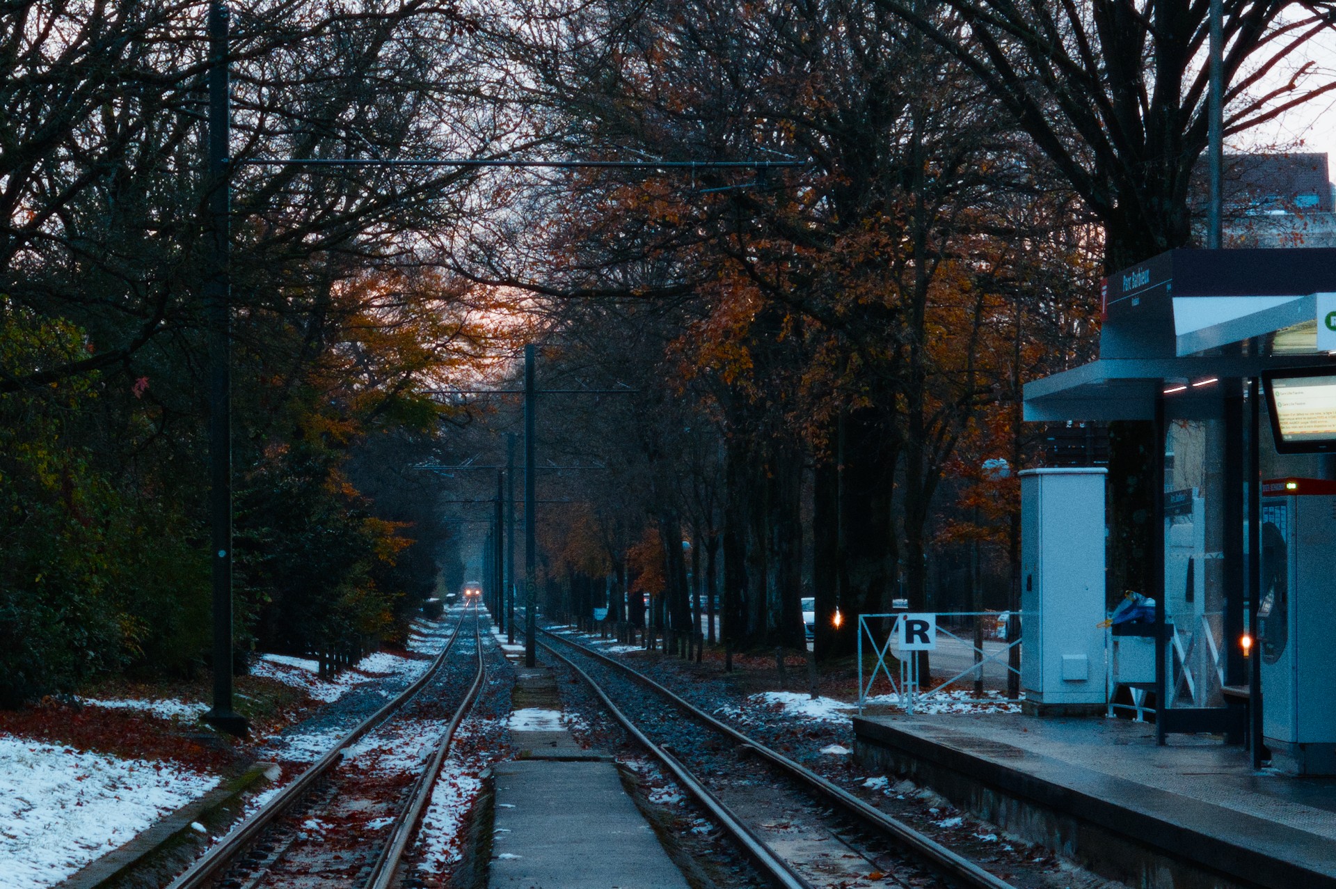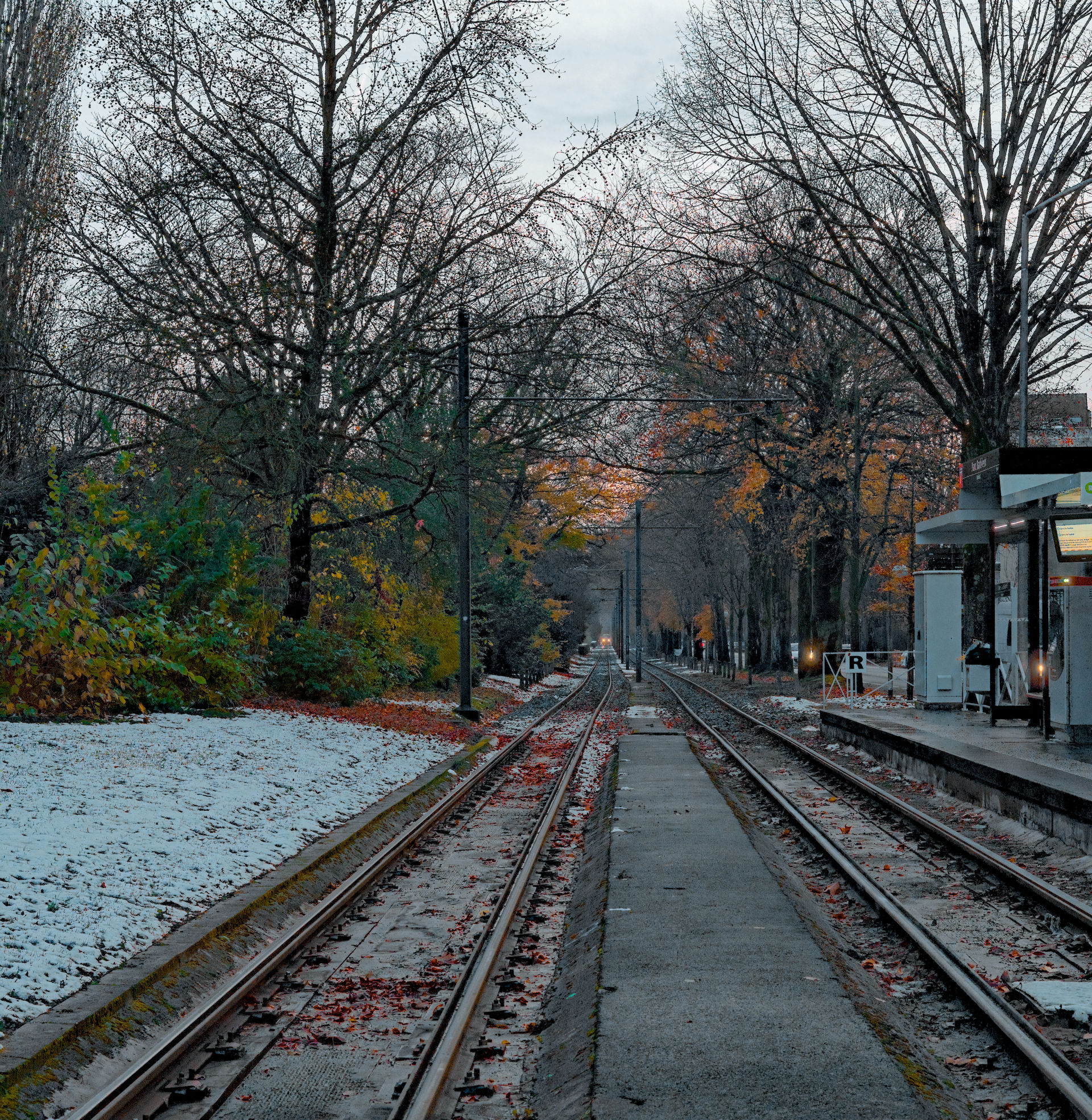 I think the kink in the rails is challenging creating conflicting leading lines. Emphasised red and orange. And softened contrast everywhere except the middle, though might have gone overboard with the Vaseline.