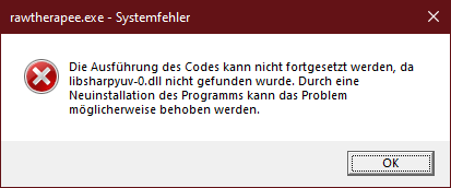 It has just been fixed: Add libsharpyuv-0.dll to Windows build by Lawrence37 · Pull Request #6672 · Beep6581/RawTherapee · GitHub