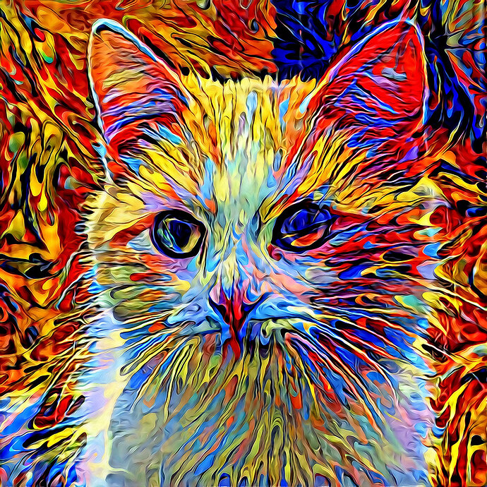No disagreement with me, pd; the original cat was generated but I did uprez and posted it below. As you can see, not much definition even in the original. Could have tried to amplify some things even more, but again, Iām a lazy filter guy. lol