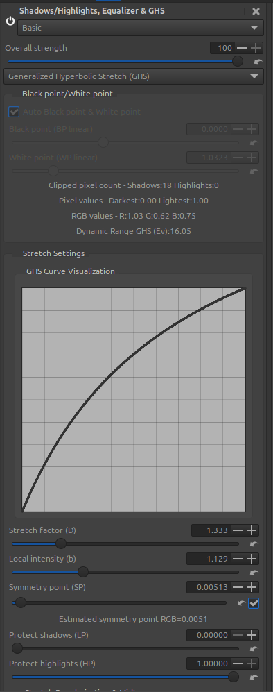 The goal of this step is to adjust the White Point (WP linear) and Black Point (BP linear), and at a minimum, to adjust the image contrast.