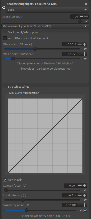 The two fundamental sliders are Stretch Factor (D), which is a simple logarithmic conversion, and Local Intensity (b), which uses a different hyperbolic function depending on the specific stretch factor (SP) and the value of (b). Of course, you need to adjust these values if you select ‘AgX Matrix’.