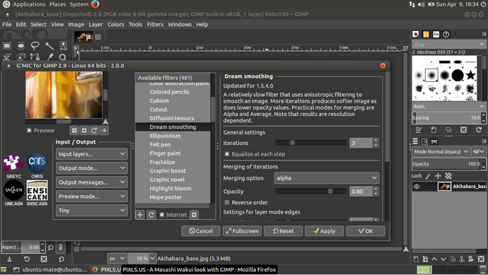 I’m more and more puzzled, particularly because I have run the dream smoothing filter repeatedly on one image with the appimage under Ubuntu Mate Xenial, and never got any crashes… could it be a question of image size and/or memory?