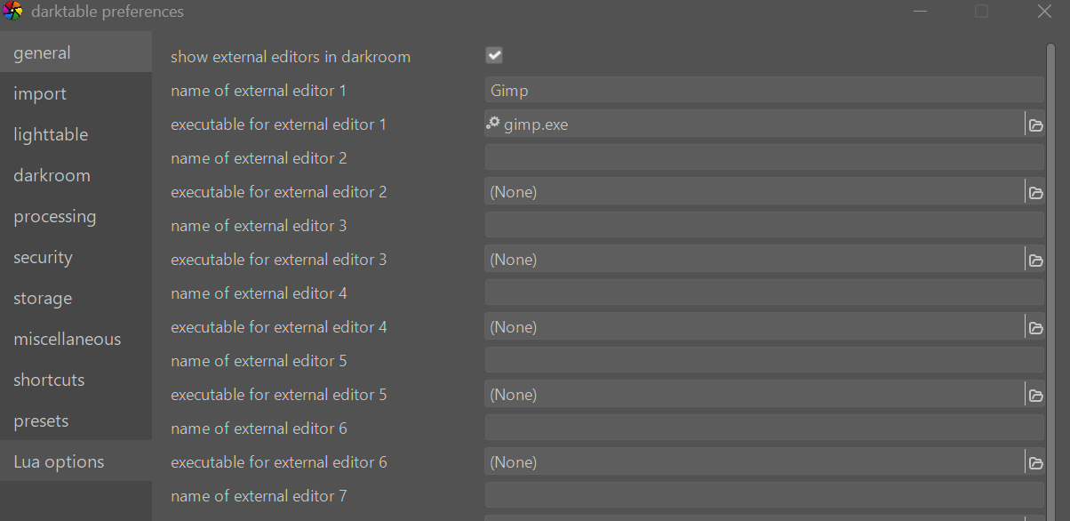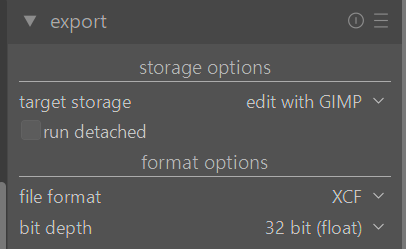 Terry you are conflating 2 scripts I believe…this dialogue you show for export is in place because you are using the “gimp” script as well, for external editors if that is all you have running you wont see the export option or at least I don’t think you will…for the external editor you choose the editor from the drop down in the module added by the script and then choose if you will edit the current image or a copy and if you select copy that is created and the image is opened in gimp…you then export from GIMP and close to come back to DT