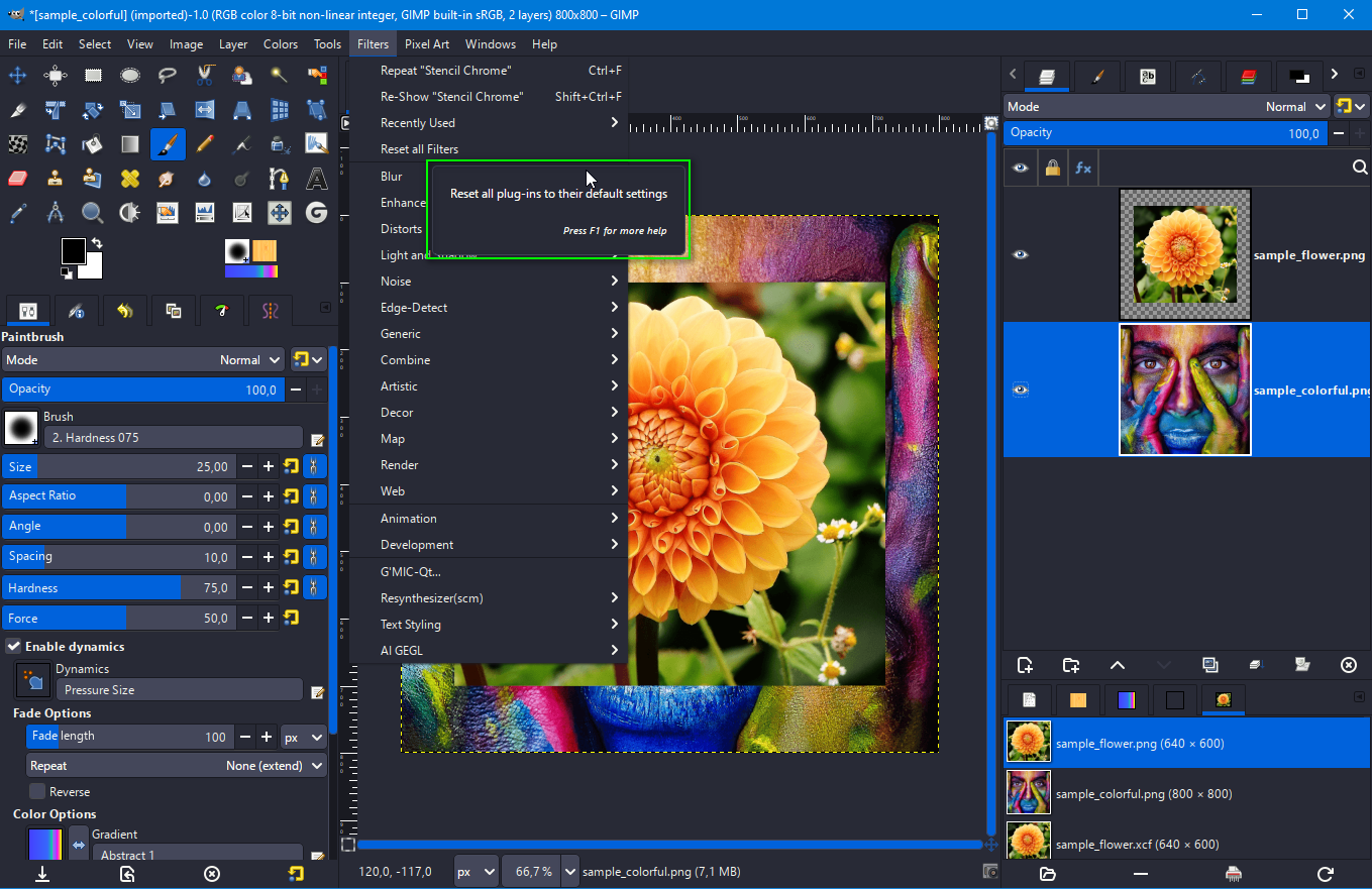 Taking advantage of your presence on this forum, I would like to ask about the possibility of highlighting in menu Gimp a specific file type with a color.