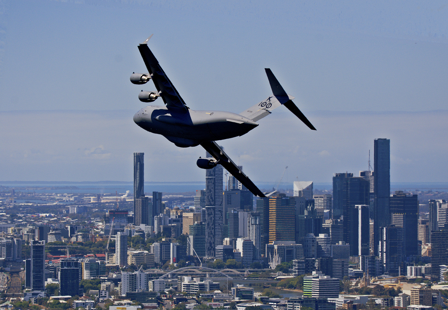 You caught my interest a couple of ways: 1) C-17, 2) loves Brisbane! Two visits, one in the early '90s on a vacation organized by my father-in-law; later, I spent two weeks working at Boeing House, which is buried in downtown in your photograph, down by the river. My favorite city in Australia.