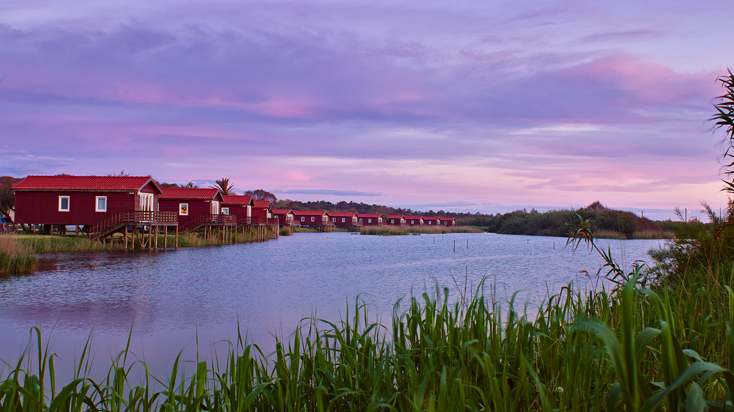 What a beautiful picture. Here is an interpretation that lightens the grasses and the houses: