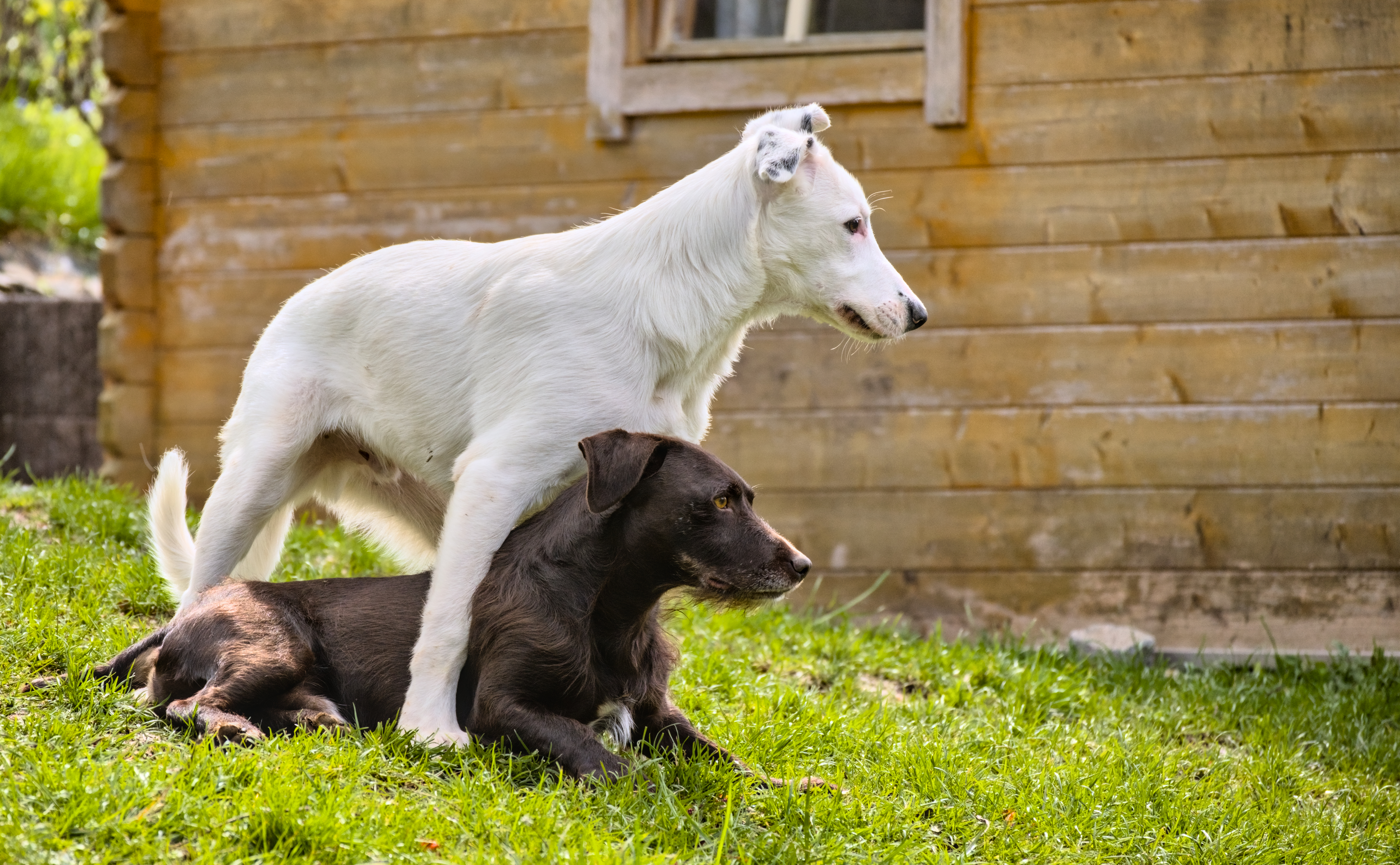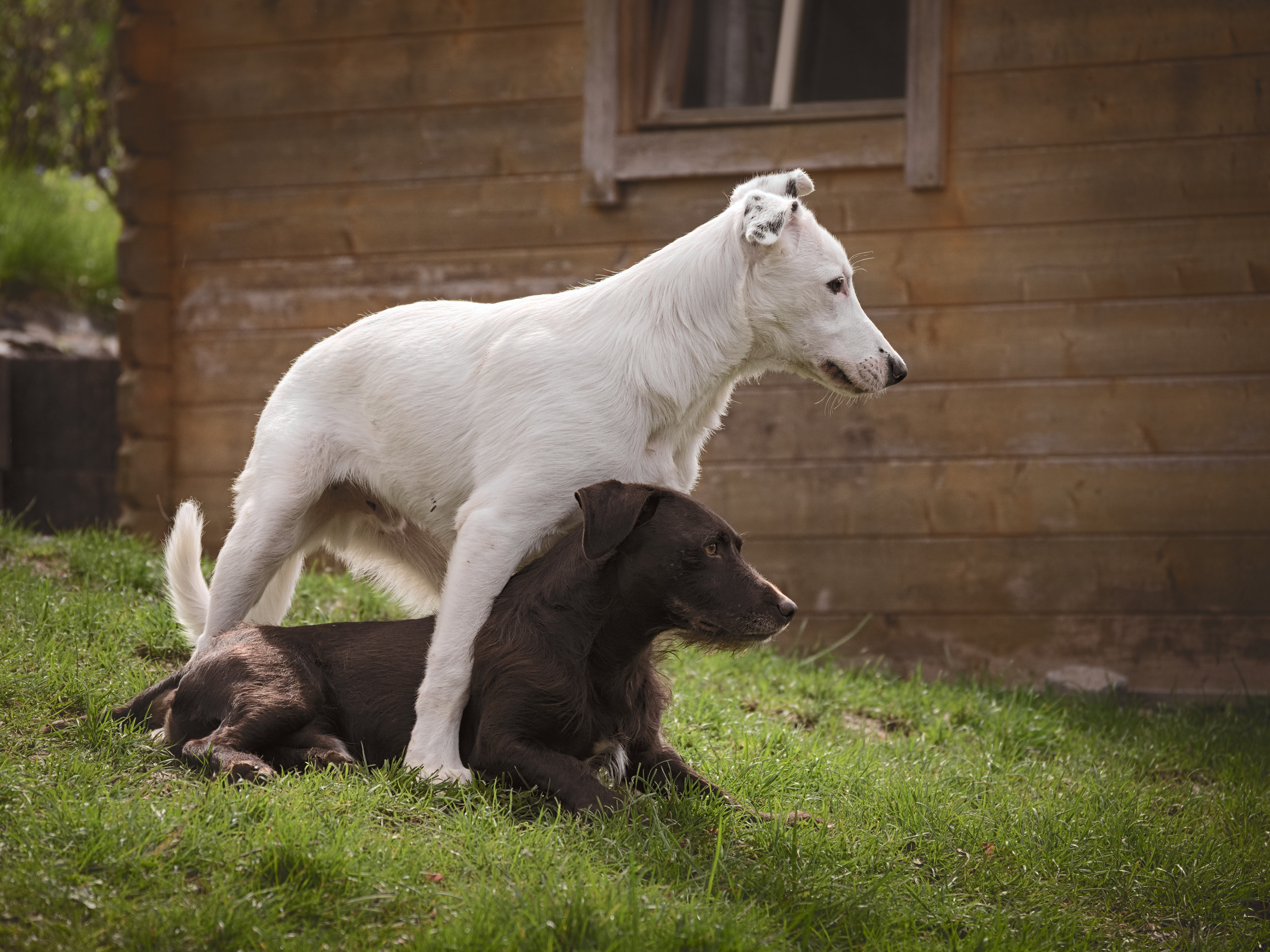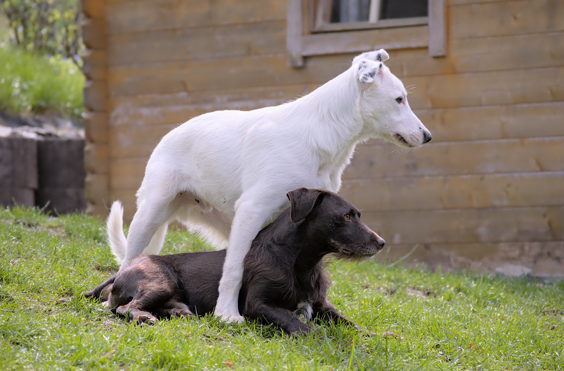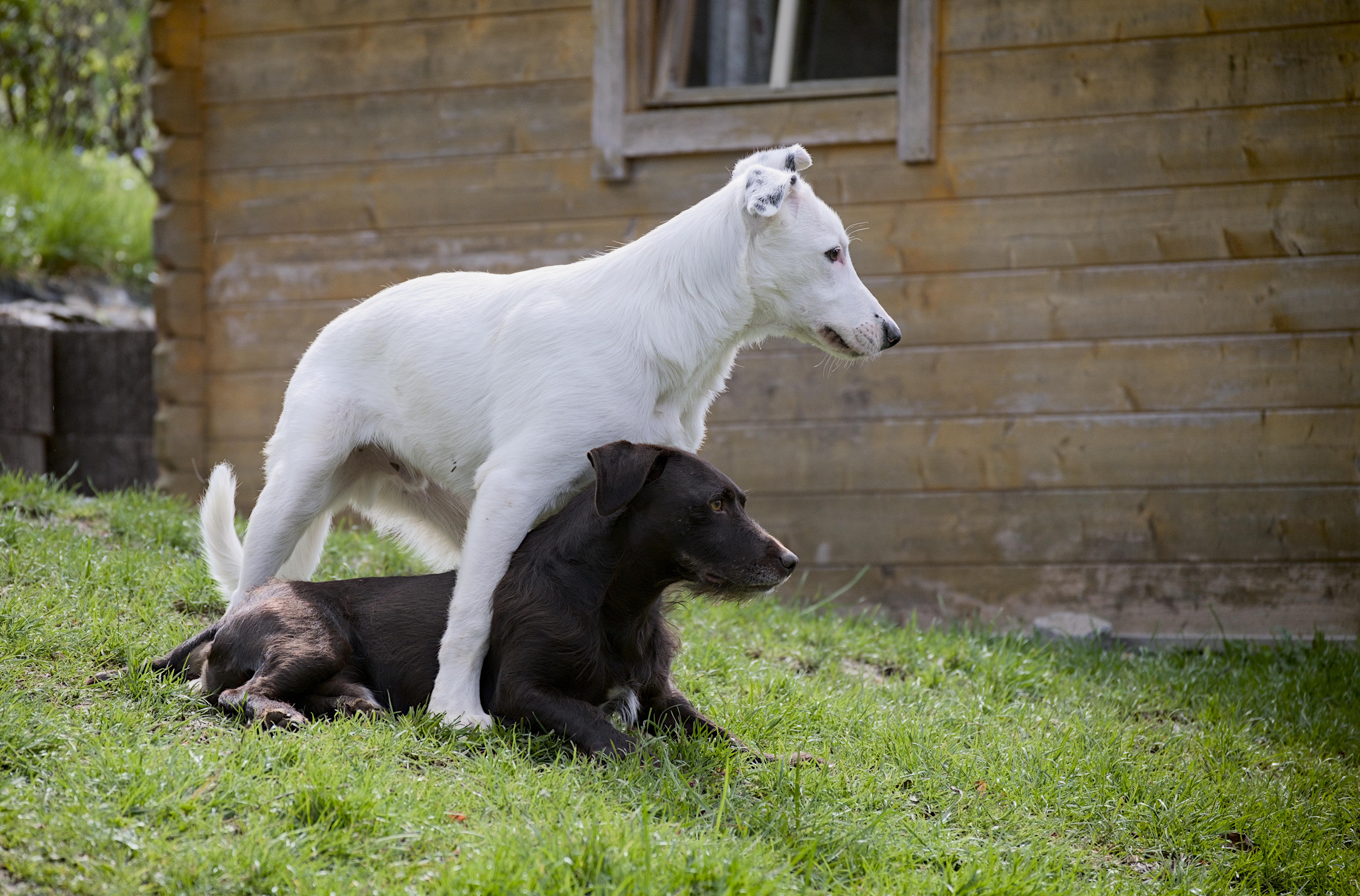 …and gimp in the nice, beefy sausage the dogs are looking at