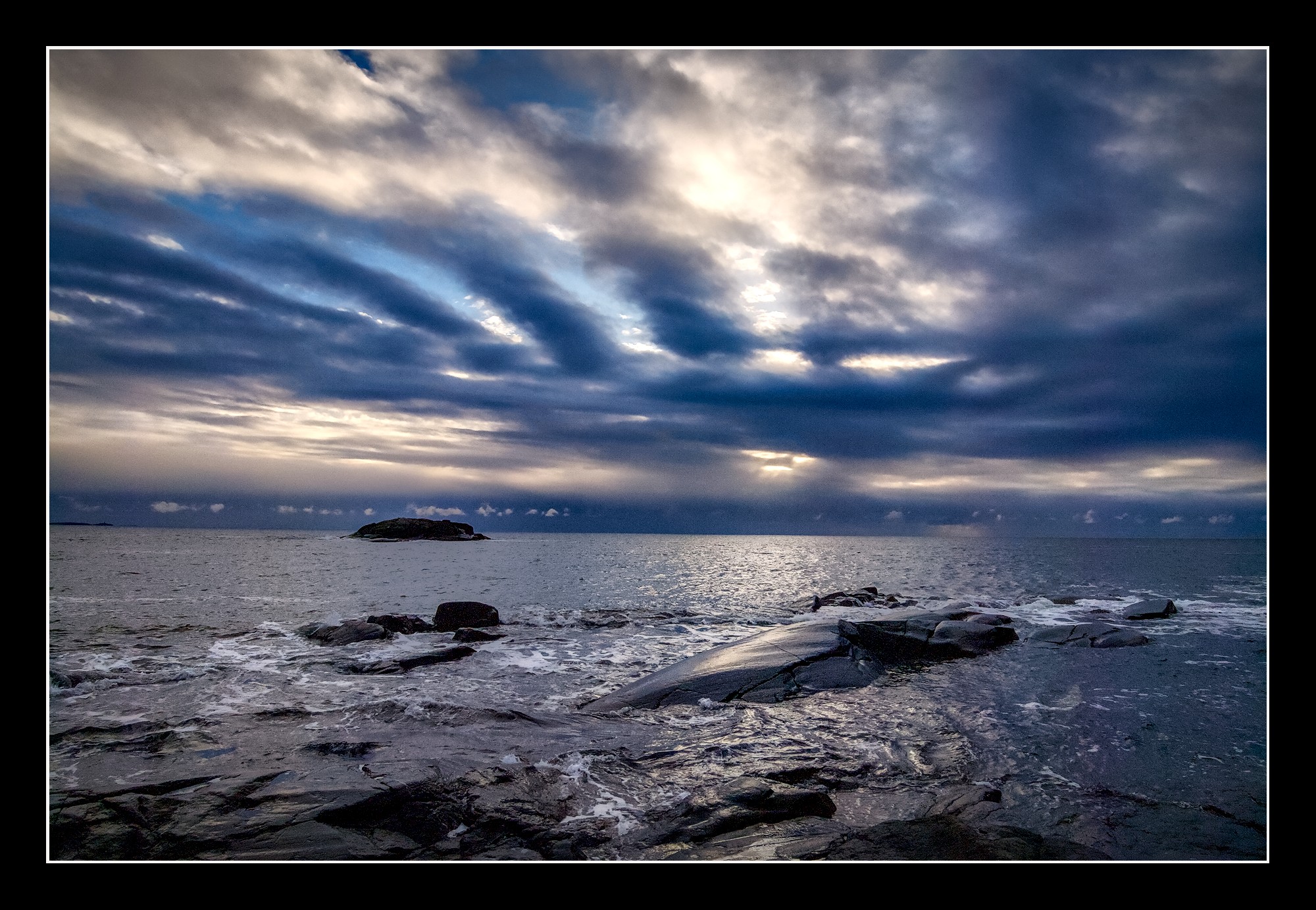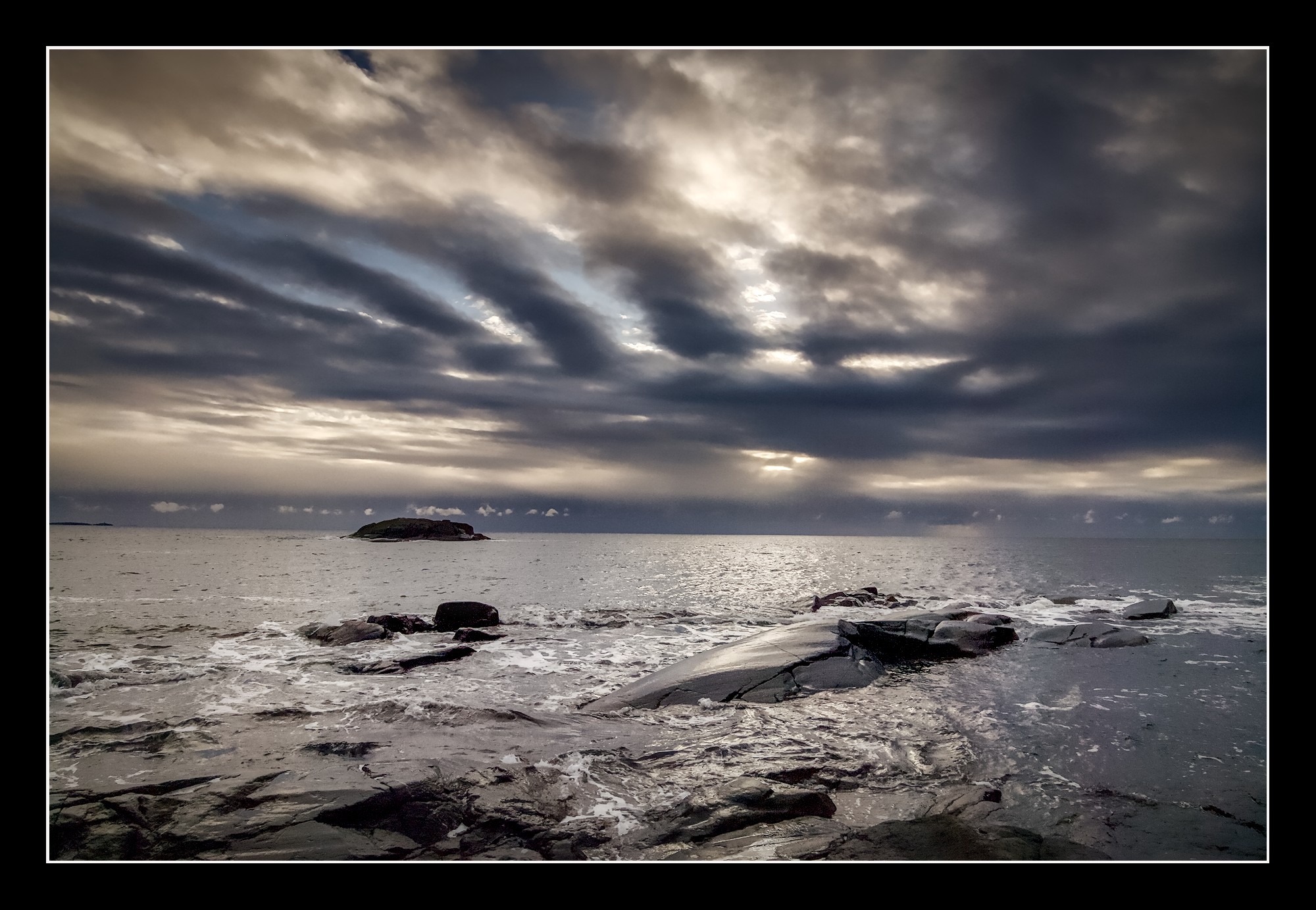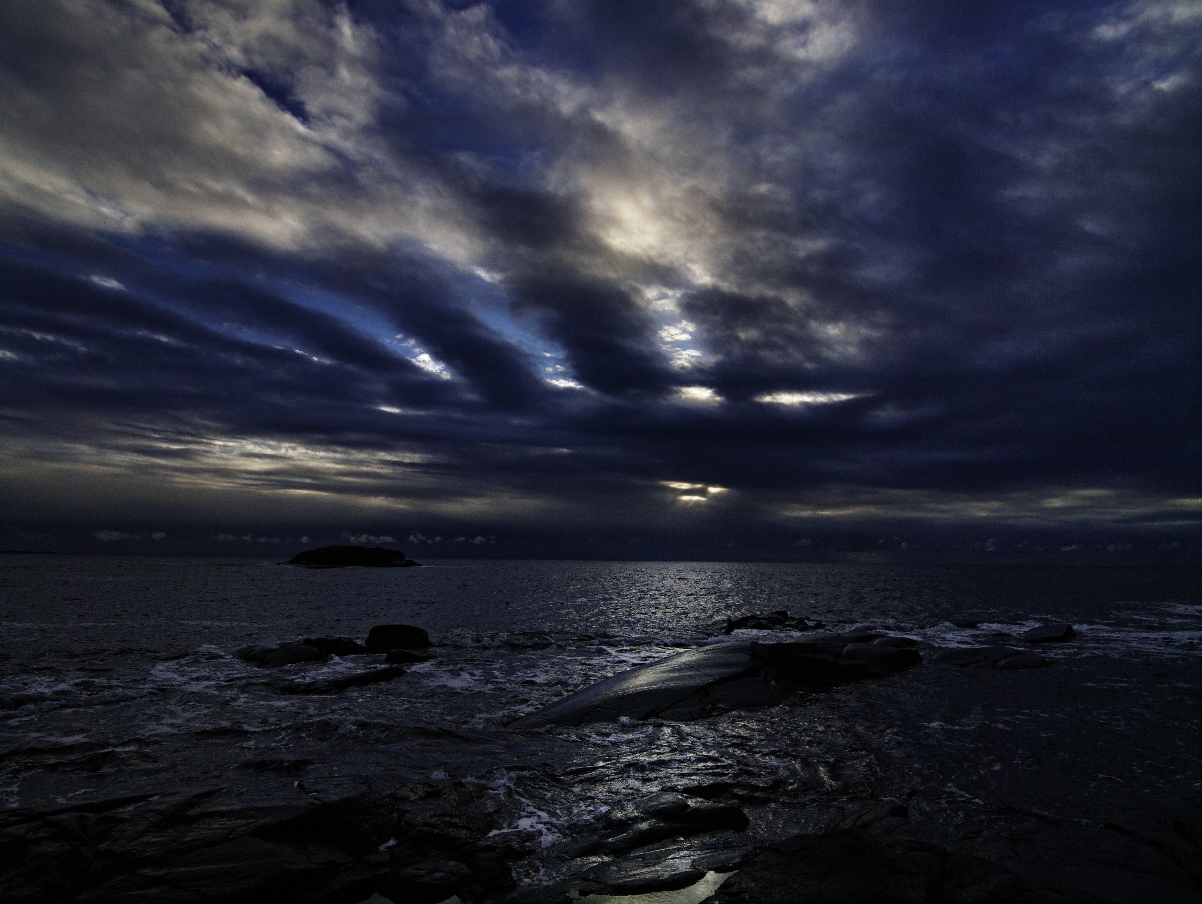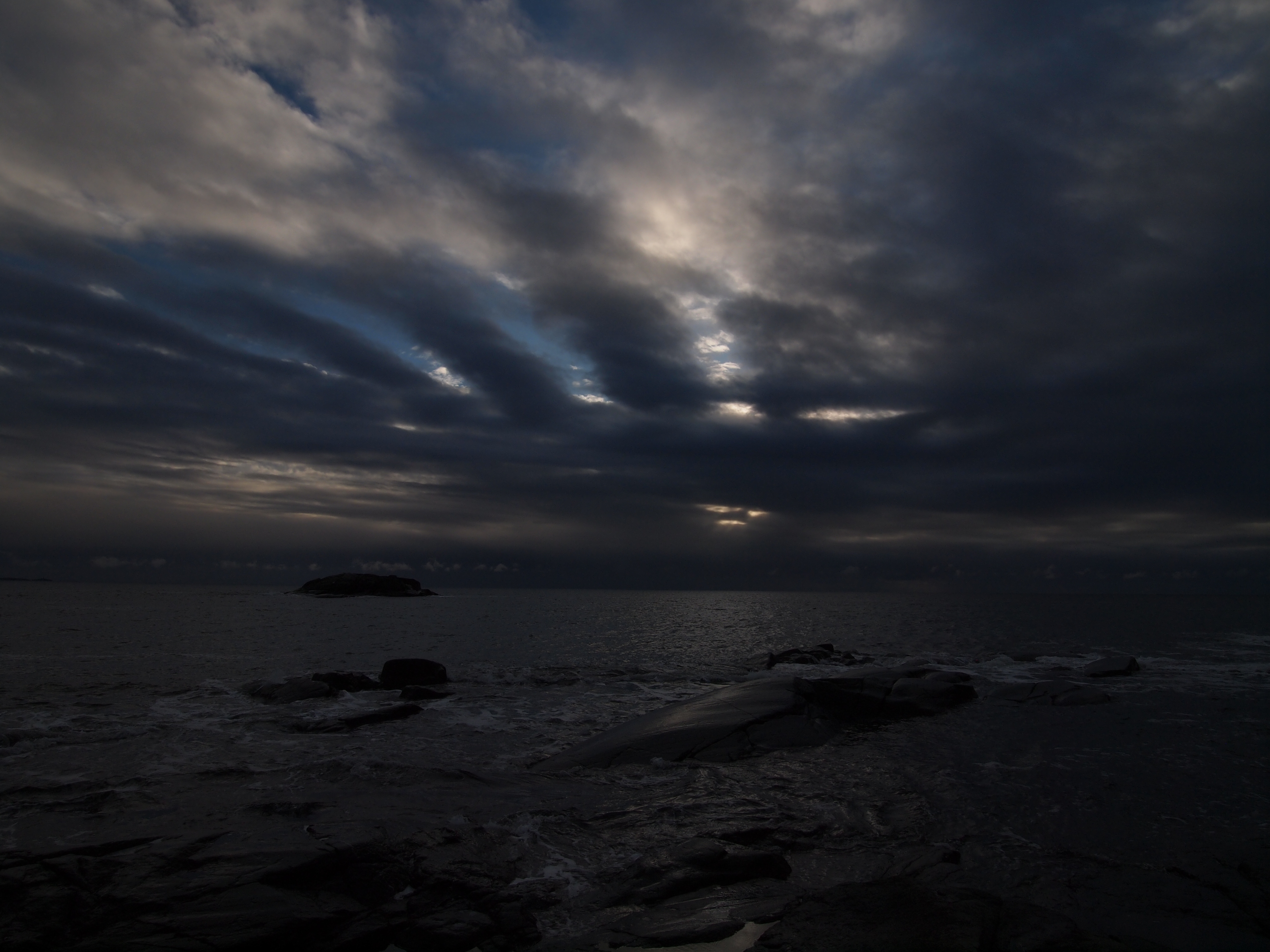 I’ve spent the last days by the sea. With great variances in weather and sky, one needs to keep an eye upwards for not missing some of the changes that is of camera interest. Yesterday I caught a scene, which looks like this in the ooc jpeg that was substantially underexposed (-2 EV) not to blow any highlights: