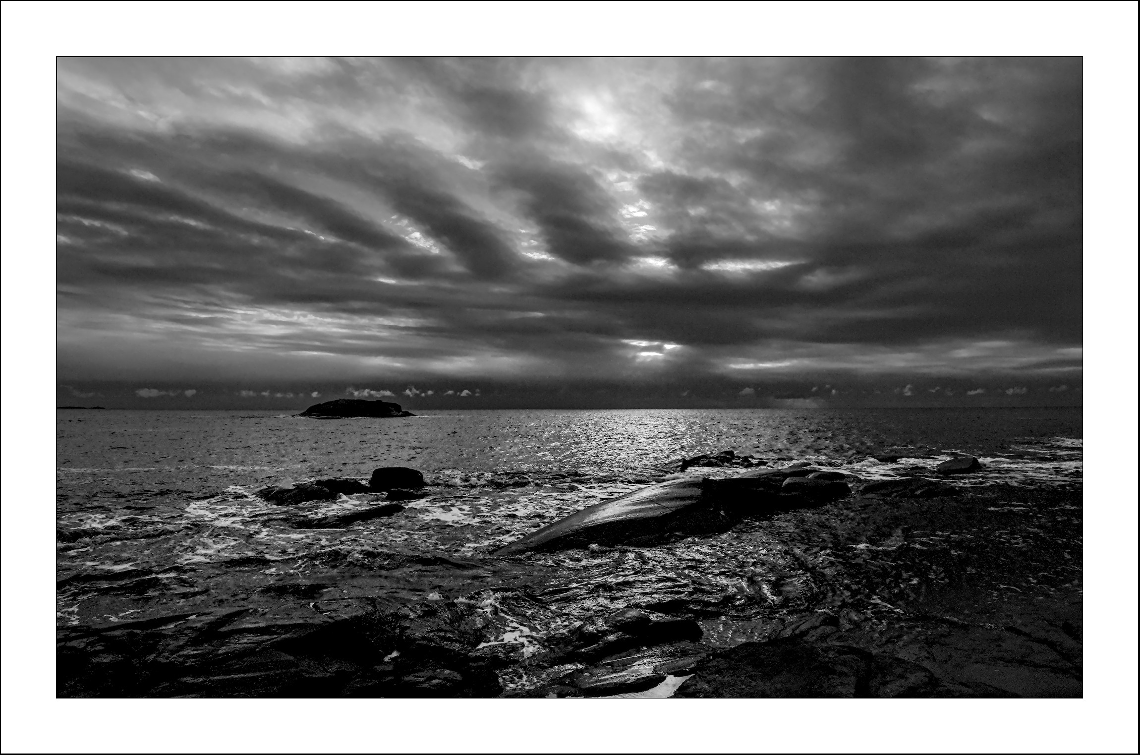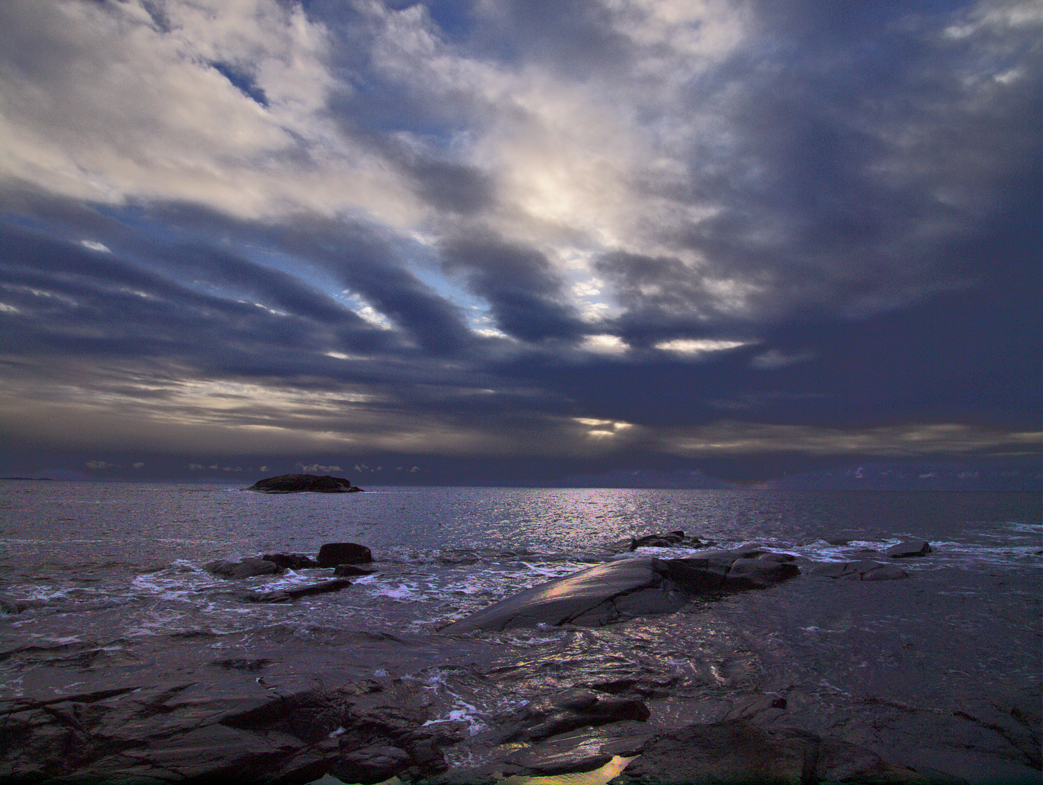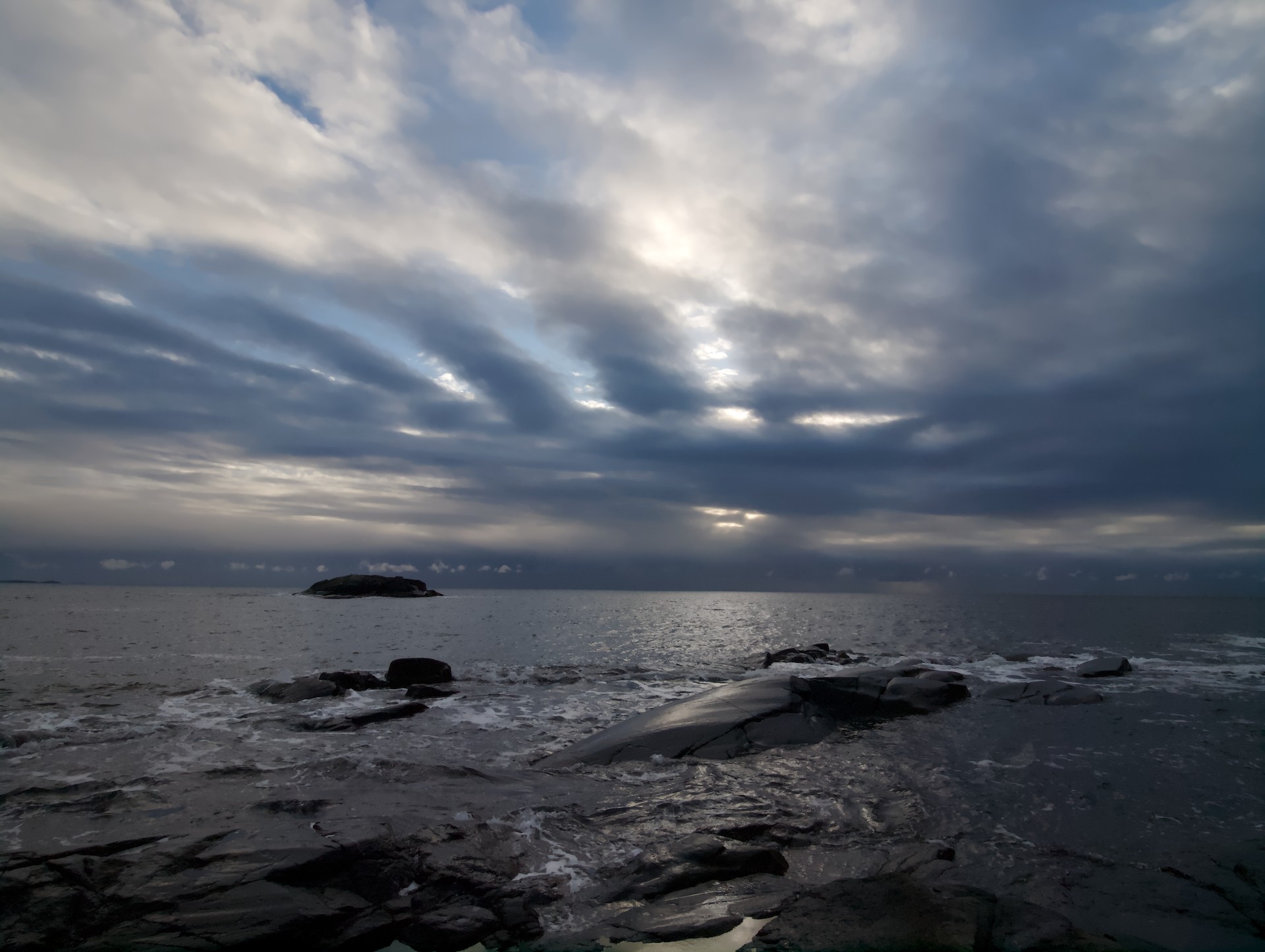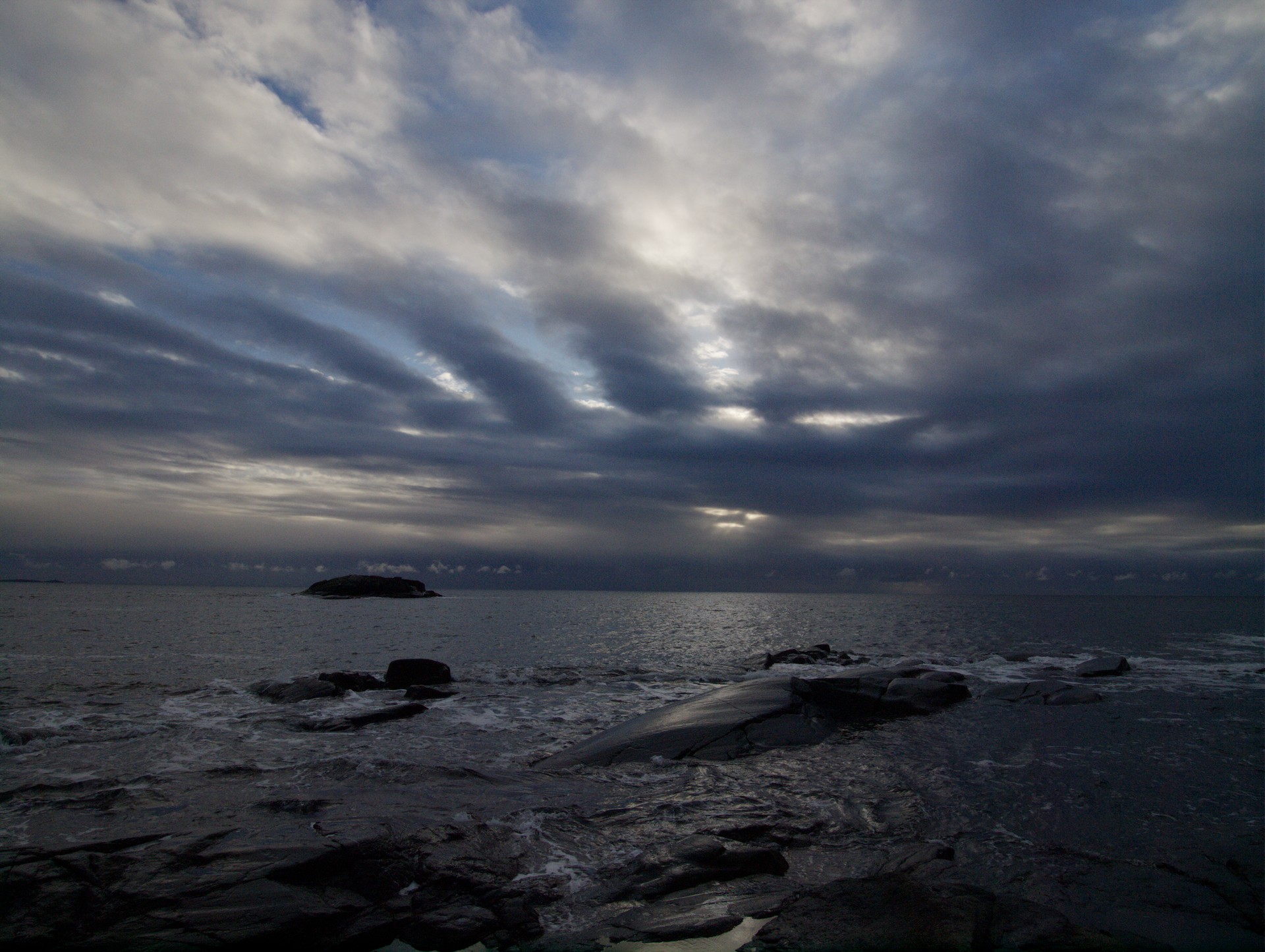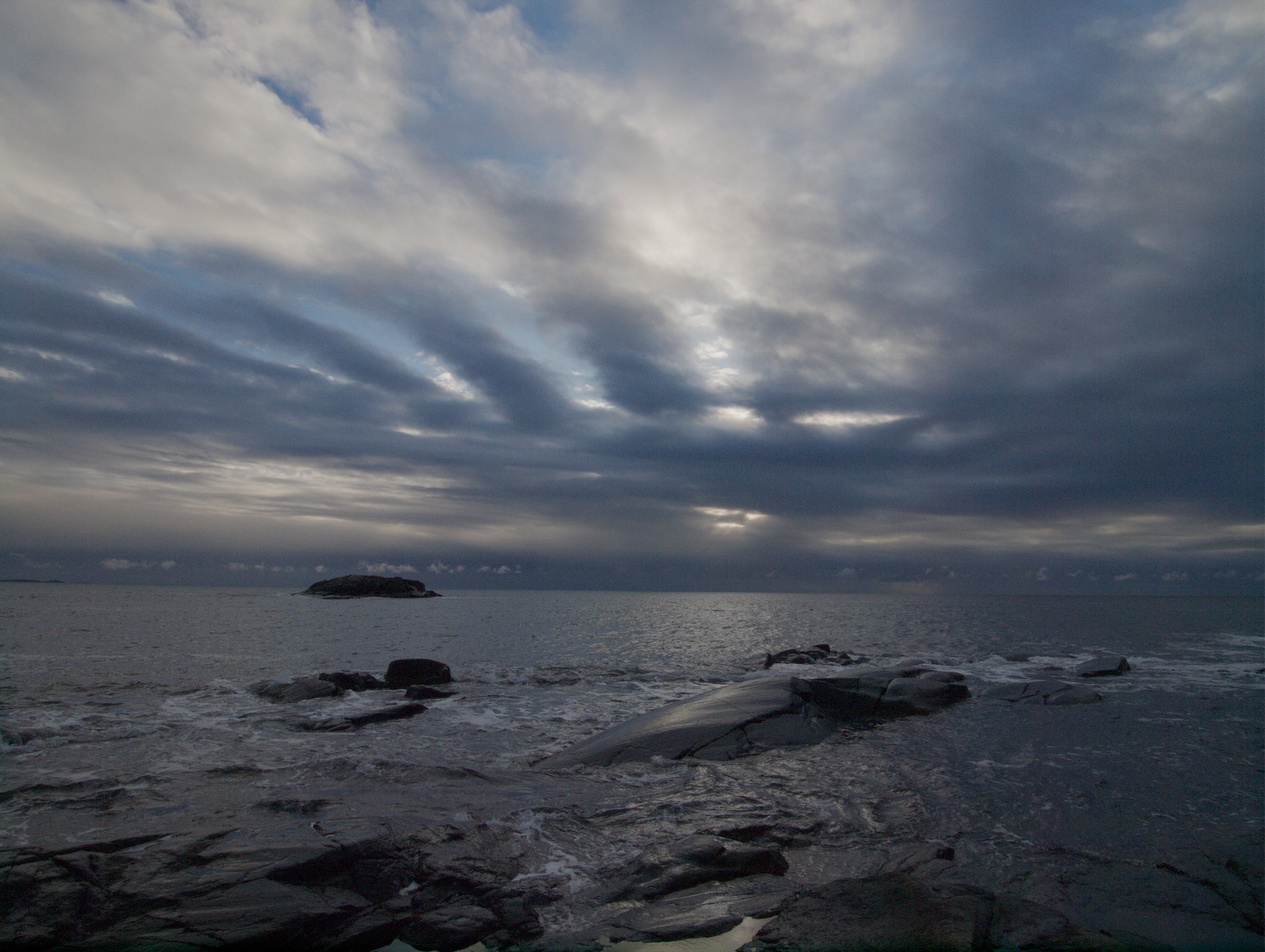 I’ve spent the last days by the sea. With great variances in weather and sky, one needs to keep an eye upwards for not missing some of the changes that is of camera interest. Yesterday I caught a scene, which looks like this in the ooc jpeg that was substantially underexposed (-2 EV) not to blow any highlights: