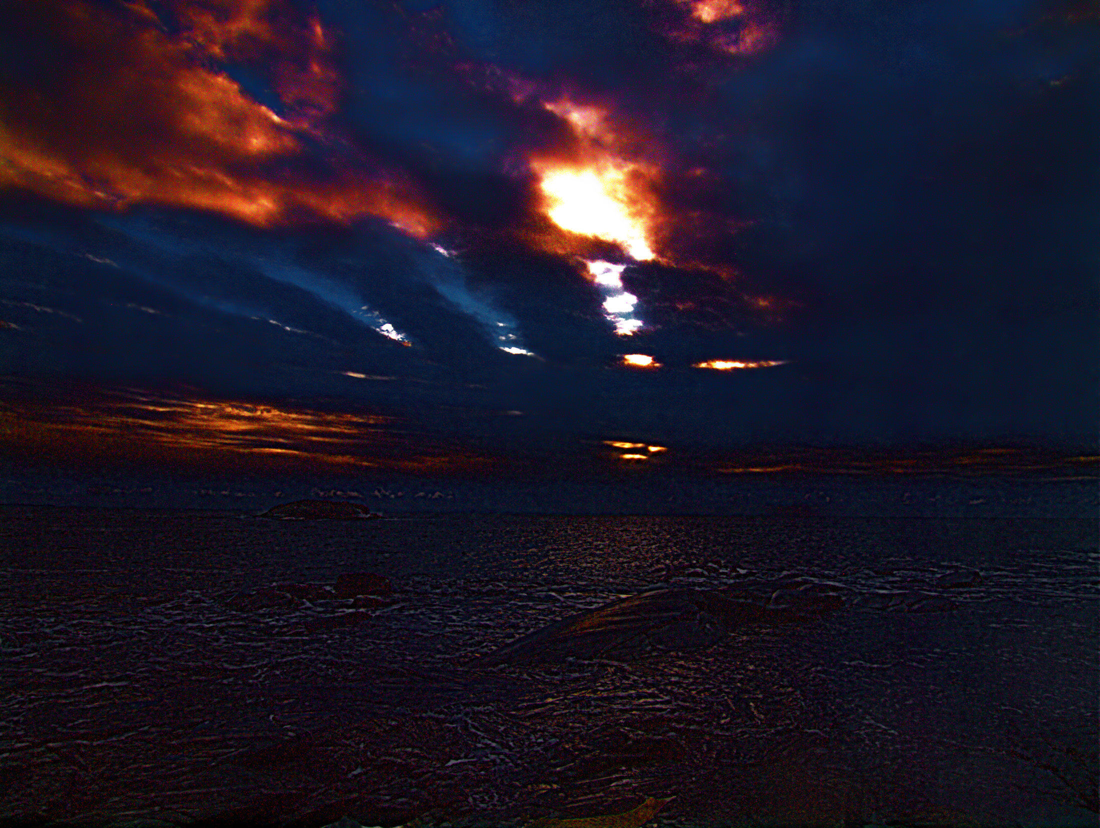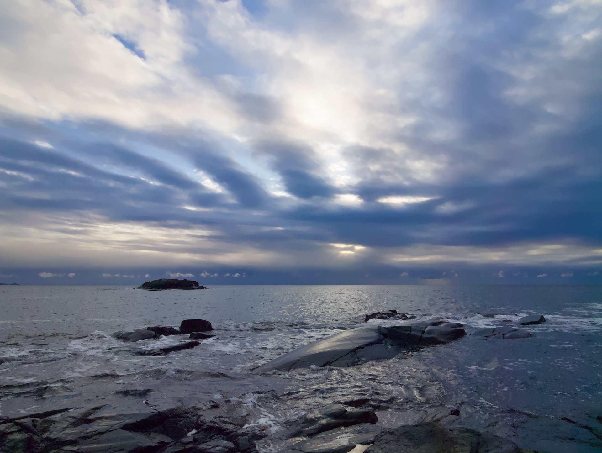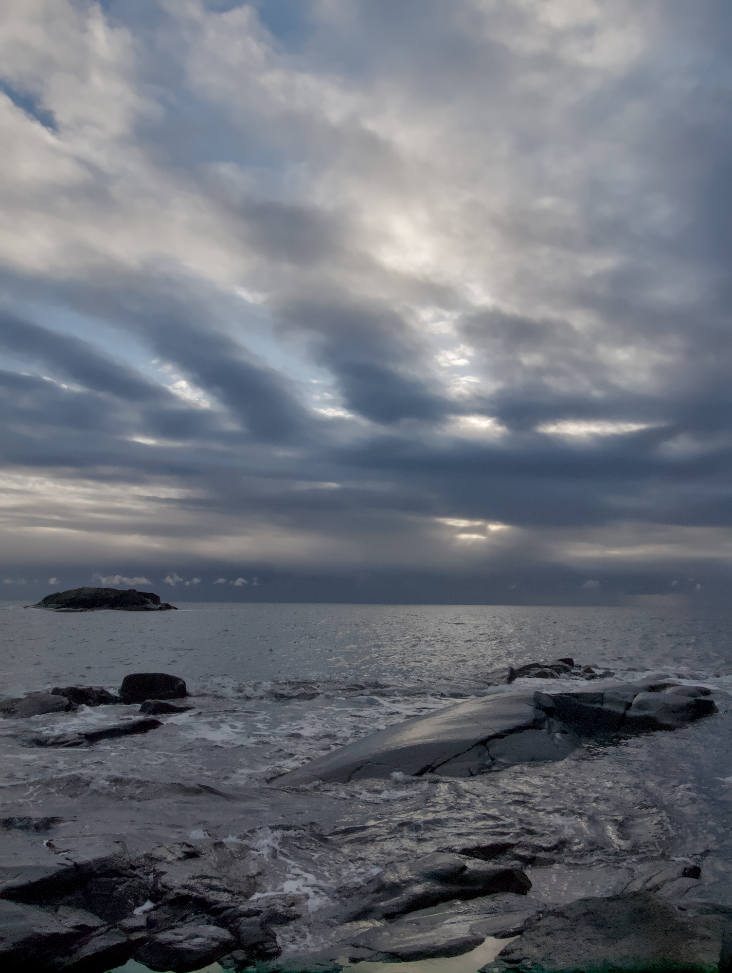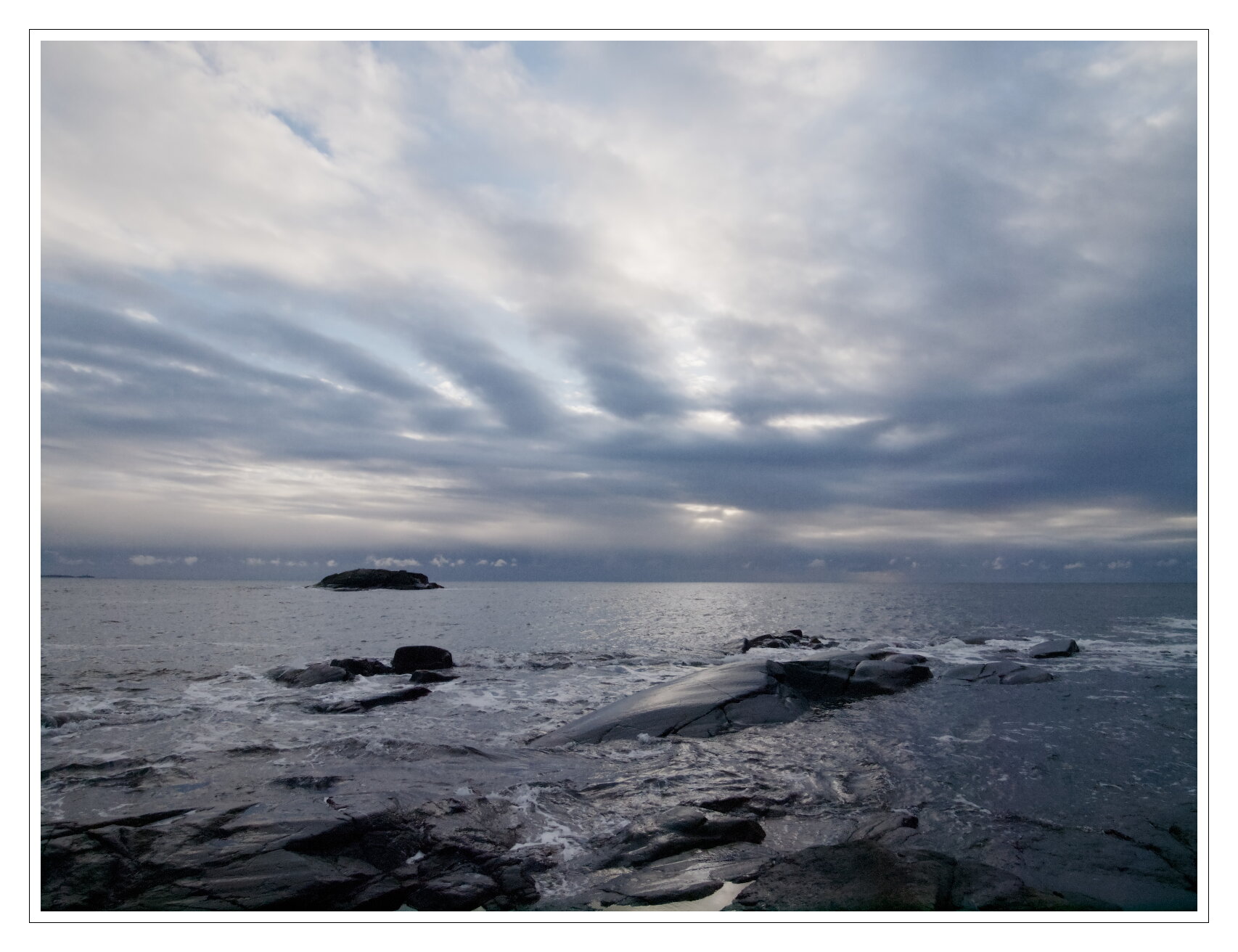 I’ve spent the last days by the sea. With great variances in weather and sky, one needs to keep an eye upwards for not missing some of the changes that is of camera interest. Yesterday I caught a scene, which looks like this in the ooc jpeg that was substantially underexposed (-2 EV) not to blow any highlights: