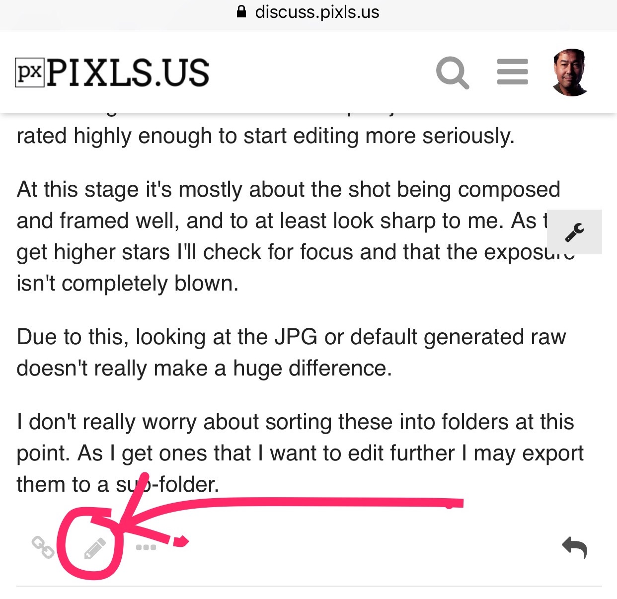 There should be a small pencil icon that will allow you to edit previous posts you’ve made (this is what it looks like on mobile):