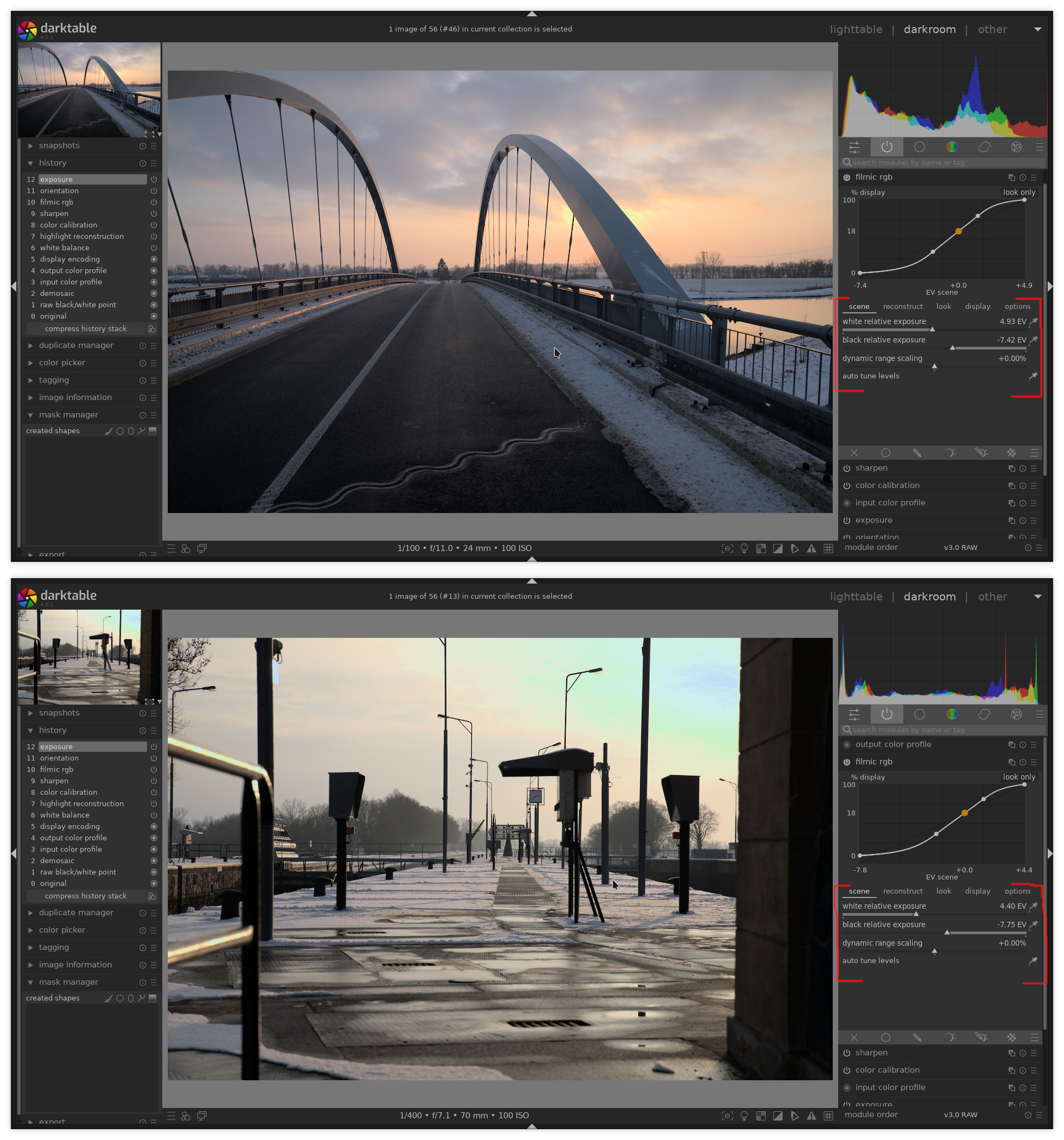 However, a “full” display-referred workflow uses different modules, with a different basic approach to editing (have a look at the available presets in the darkroom for the module layout, the hamburger menu just below the histogram).